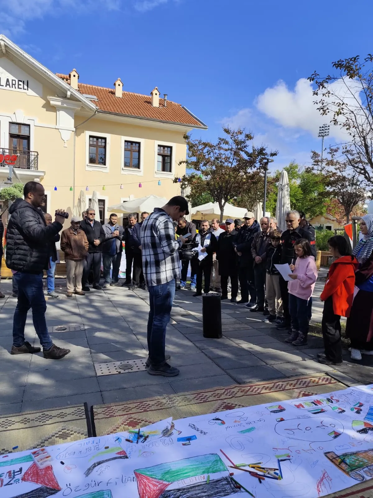 Kırklareli İnsanı Yardım Derneği ve Kırklareli Yetim Vakfı, Gazze’de yaşanan insanlık dramına dikkat çekmek ve devam eden soykırımı protesto etmek amacıyla anlamlı bir etkinlik düzenledi. “Filistinli Çocuklar İçin Çiz” adıyla gerçekleştirilen program, Millet Bahçesi Gar Binası önünde yoğun katılımla yapıldı. Etkinlikte çocuklar, Gazze’deki kardeşleri için resimler çizdi ve ardından basın açıklaması yapıldı.