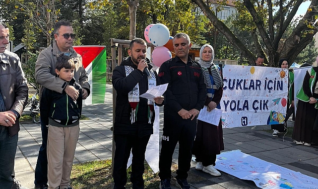 Etkinlikte okunan basın açıklamasında, Gazze’de yaşayan çocukların yaşadığı zorluklar, açlık, yoksulluk ve savaşın acı yüzü dile getirildi. Açıklamada, “Ben bir çocuğum. Bugün buraya, Filistinli kardeşlerimiz için geldim. Onların sesi olmak istiyorum çünkü onlar artık konuşamıyor, gülmüyor, oynayamıyor,” ifadeleriyle Filistinli çocukların sesi olundu.