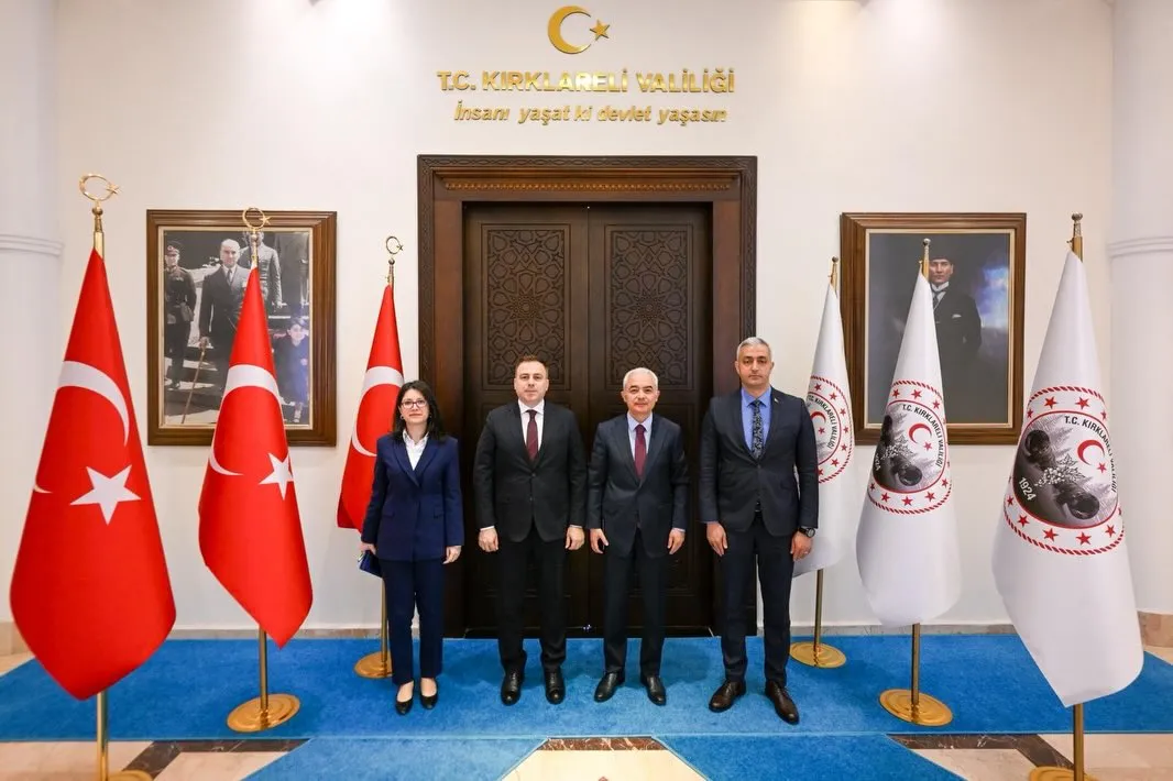 Kırklareli Valisi Uğur Turan, Valilik makamında önemli isimleri ağırlamaya devam ediyor. Gerçekleşen son ziyarette, üst düzey yetkililer bir araya geldi.