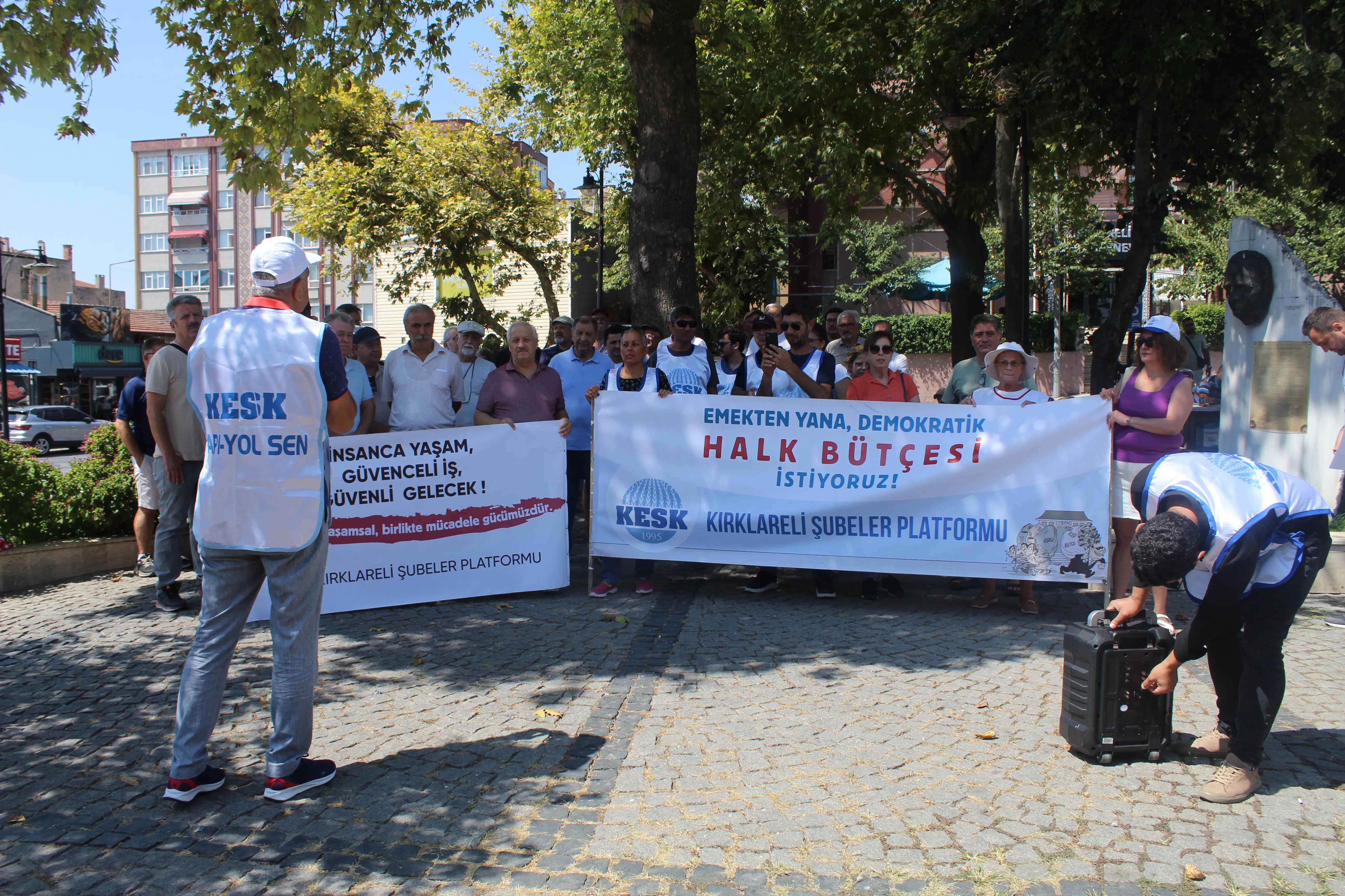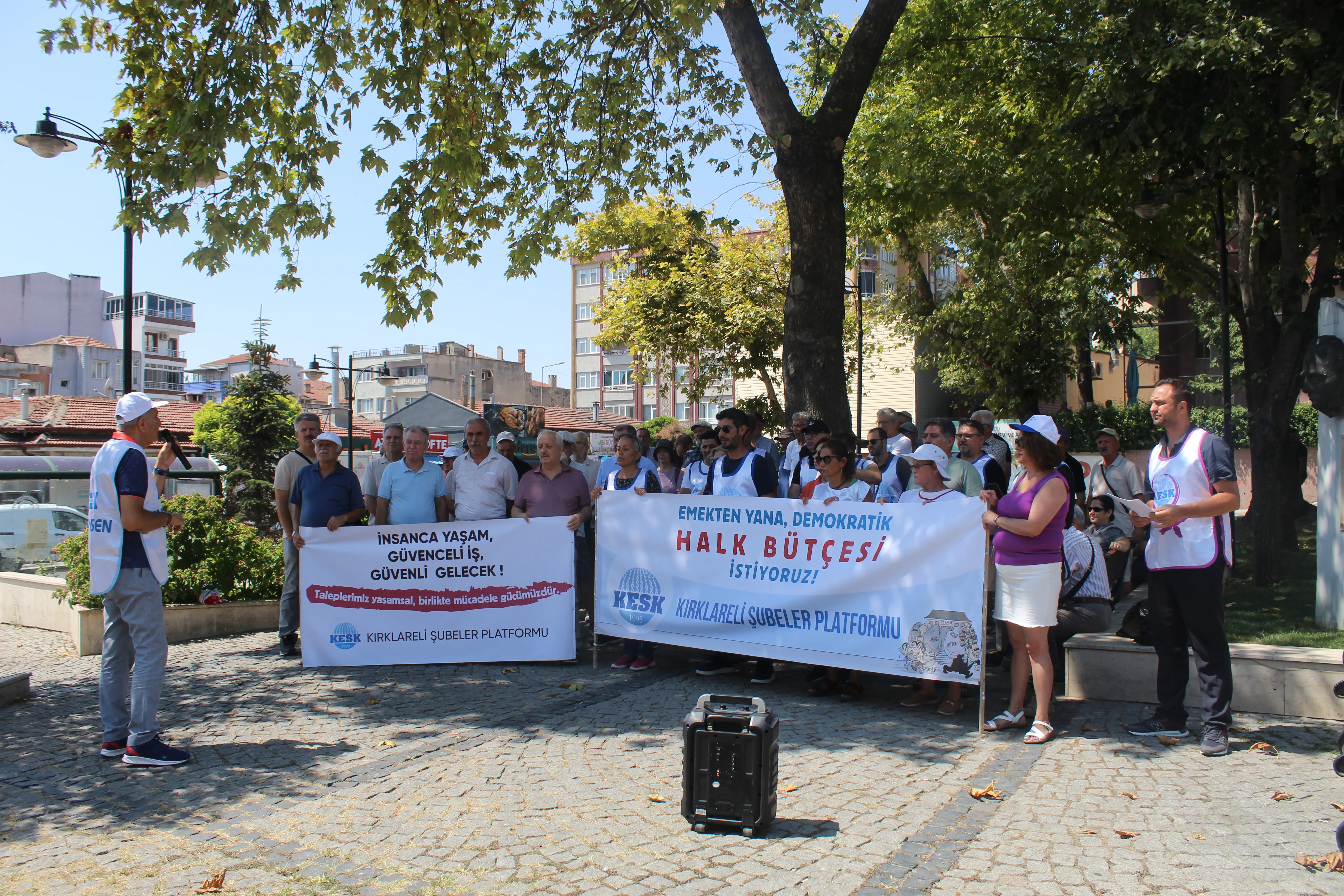 KESK Kırklareli Şubeler Platformu, Öğretmenevi yanında bulunan Saatli Park’ta bir araya gelerek hükümetin toplu sözleşme teklifine tepki gösterdi. Grup adına basın açıklamasını Eğitim Sen Kırklareli Şube Başkanı Okan Balcı yaptı. Balcı, kamu emekçileri ve emeklilerin haklarının görmezden gelindiğini belirterek taleplerin karşılanmasını istedi.