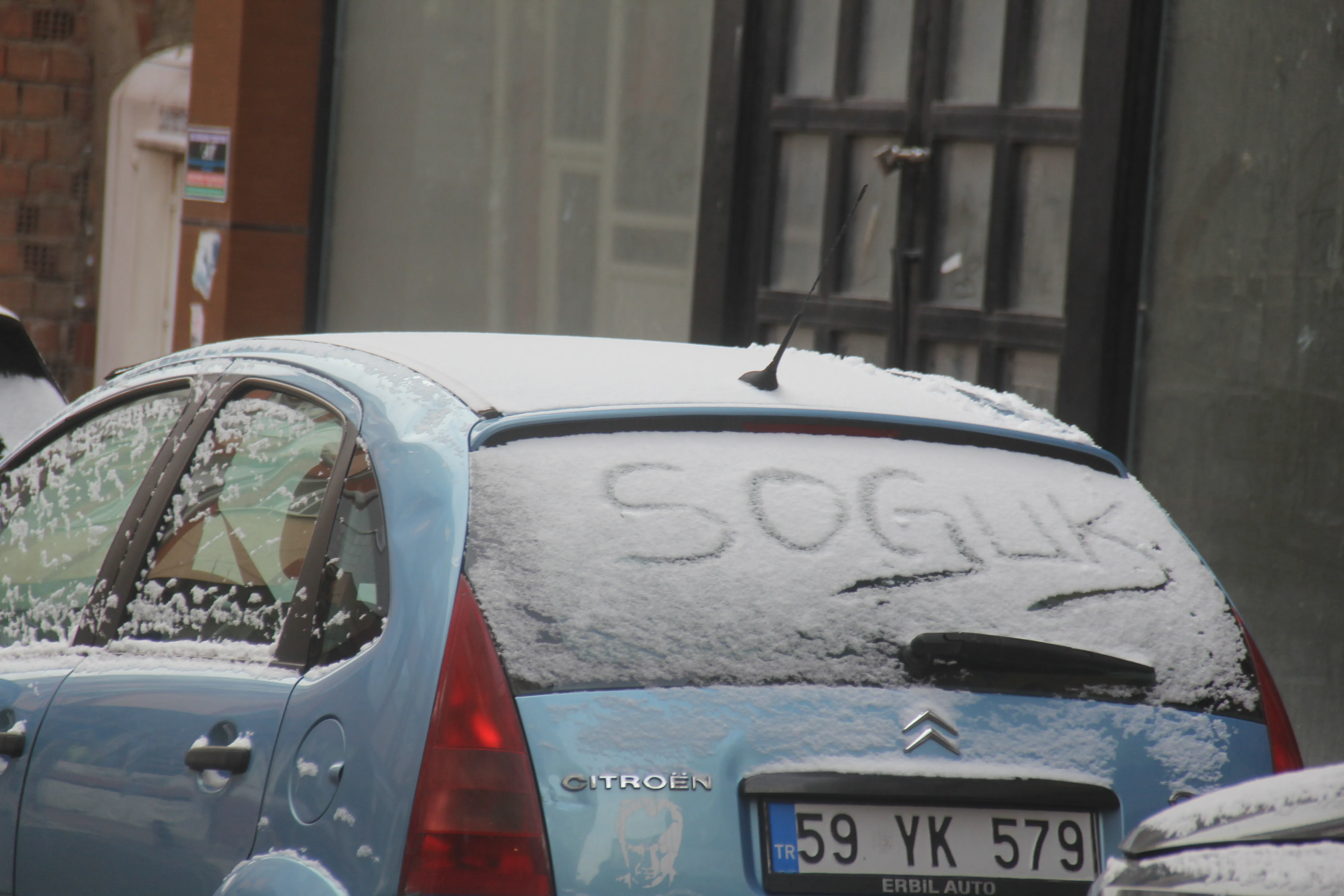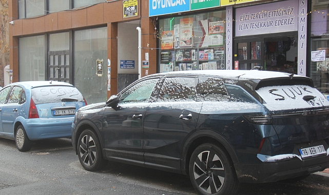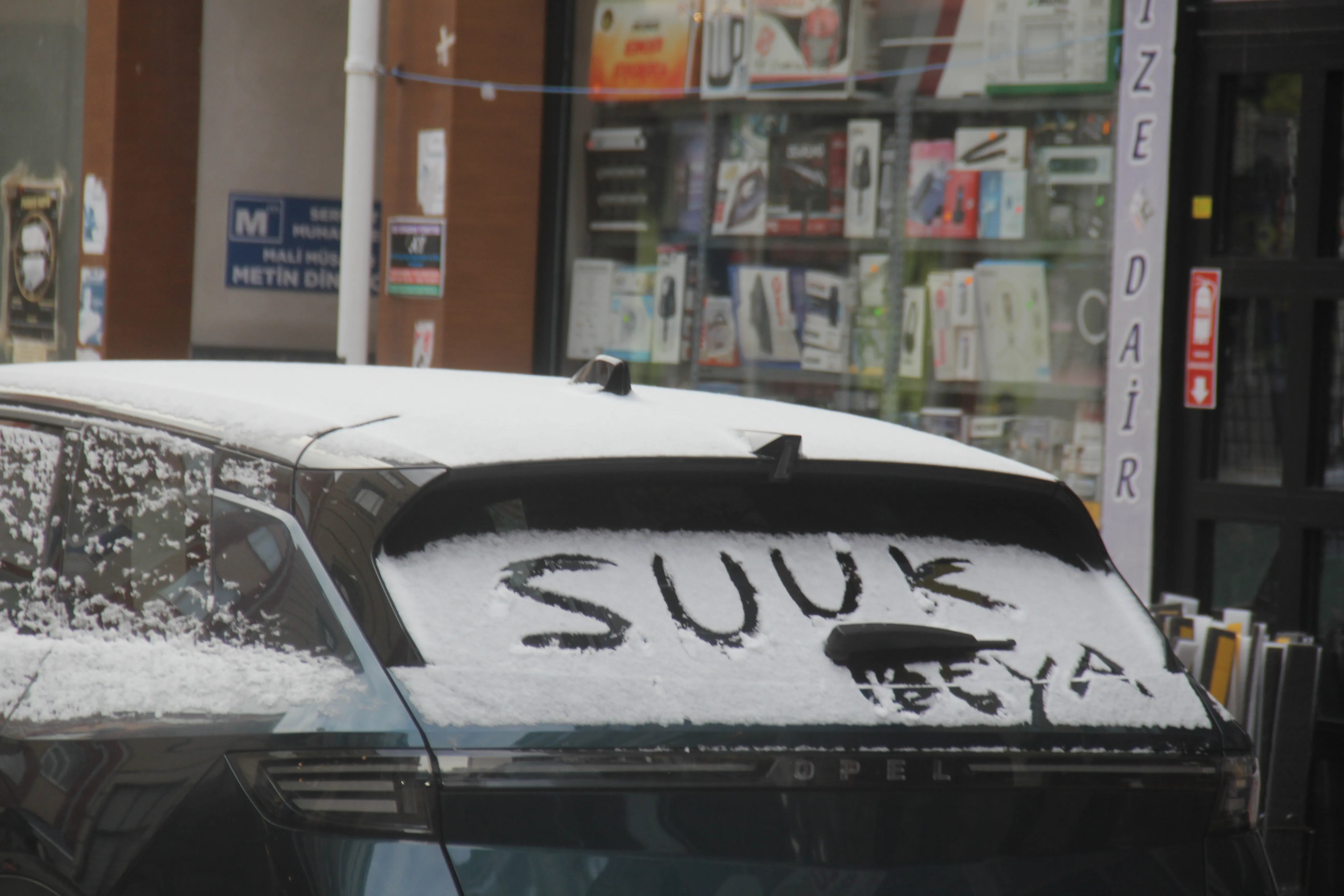Bazı vatandaşlar ise kar ve soğuk havayı espirili bir dille anlatmayı tercih etti. Araçlarının üzerindeki kara parmaklarıyla “Suuk beya” ve “soğuk” yazıları yazan vatandaşlar, ortaya renkli görüntüler çıkardı. Bu yazılar çevredeki vatandaşların ilgisini çekerken, gülümseten anlara sahne oldu.