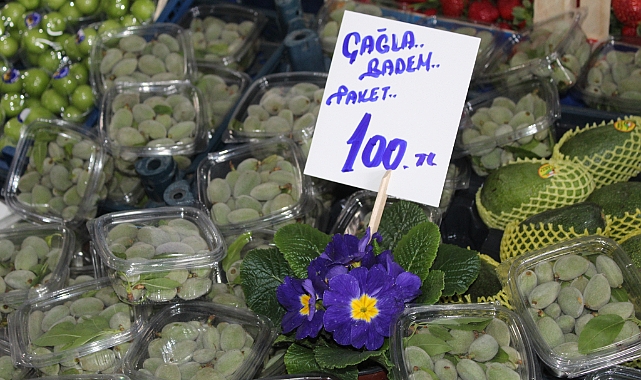 Pazarlarda satışa sunulan çağla badem paketlerinin fiyatının 100 TL olduğu görüldü. Fiyatların yüksekliği, hem üretim maliyetleri hem de sezonun henüz başında olunmasıyla ilişkilendiriliyor. Satıcılar, ilerleyen haftalarda arzın artmasıyla birlikte fiyatlarda değişim olabileceğini ifade ediyor.