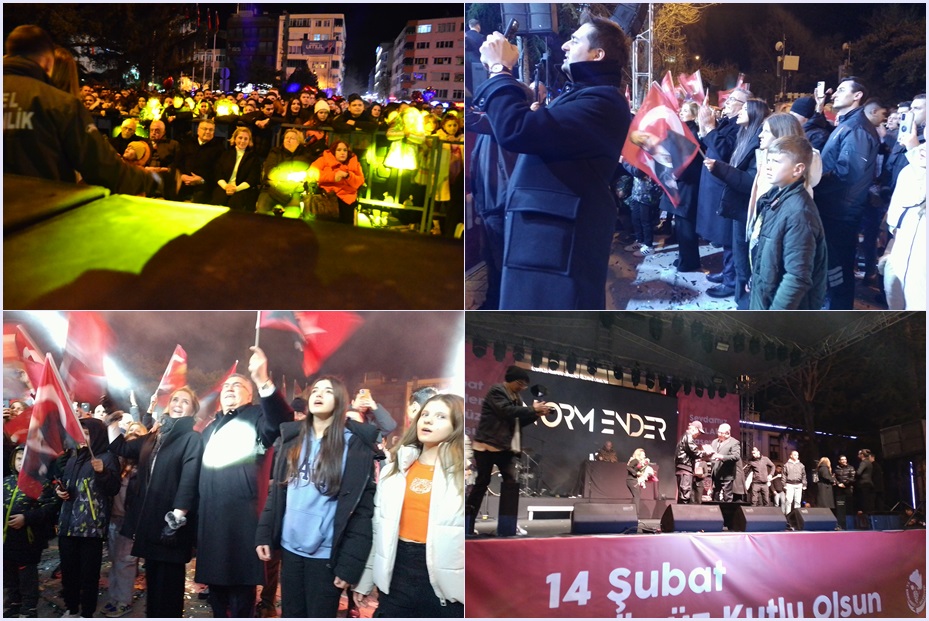Konser esnasında sahneye çıkan Kırklareli Belediye Başkanı Kesimoğlu; ‘’Kanının son damlasına kadar Atatürk sevdalısı, sevgili hemşehrilerim merhaba. Mutlu muyuz? Keyifli miyiz? Sevgililer Gününüz kutlu olsun. Hayatınızın her dönemi sevgiyle dolu olsun, barış içinde, güzelliklerle dolu olsun. Bugün hepimizi bir araya getiren sevgi. Biz hep sevgiyle, sevginin diliyle hayata tutunuyor, sizlere hizmet ediyoruz. Sevginin iyileştirici, birleştirici, tedavi edici yönleri var, bunu hepimiz biliyoruz. Geçmekte olduğumuz bu sürecin içinde, hepimizin tedaviye ihtiyacı var. Pandemi yaşadık, deprem yaşadık, ekonomik kriz yaşıyoruz. Bu tedavide de yaşadığımız bu gecenin katkısının büyük olmasını diliyorum. Ve sizler biliniz ki sahip çıktığınız sürece, biz Kırklareli olarak Trakya’nın kültür başkenti olmaya devam edeceğiz. Sizler sahip çıktığınız sürece, her ay Kırklareli’ne Norm Ender gibi çok değerli sanatçılarımız gelecek. Laikliğe, çağdaşlığa sahip çıkan ve şarkısı 200 milyon kişi tarafından izlenen böyle sanatçı dostlarımız hep aramızda olacaklar. Yaşam her yönüyle devam ediyor. Geride bıraktığımız gün içinde Erzincan, İliç’te bir maden kazasında 9 yurttaşımız kayıp. Biz depremde de gördük, depremin 47. gününde, o enkazın içinden sağ çıkan yurttaşlarımızın olduğunu biliyoruz. Eminiz ki o yurttaşlarımız da oradan sağ salim çıkacak ve ailelerine kavuşacaklar.  Sevgili hemşehrilerim aslında ben size neler yaptık, neler yapacağız onları anlatacaktım bu akşam. Gençlerimize yönelik neler yaptık, kadınlarımıza, emeklilerimize yönelik neler yaptık, kapalı pazardan bahsedecektim, bahsetmeyeceğim. Temizlikle ilgili atağa kalktığımızdan bahsedecektim, bahsetmeyeceğim, sizleri üşütmek istemiyorum. Asfalt çalışmalarımızla ilgili, suyla ilgili çalışmalarımızdan bahsedecektim, bahsetmeyeceğim. Ata Gar’ı niye tamamlayamadığımızdan, dövizin yüzde 537 artışından, motorinin yüzde 700 artışından bahsedecektim, bahsetmeyeceğim. Demirden, çimentodan bahsedecektim, ondan da bahsetmeyeceğim. Ama bilin ki bu kentte hep birlikte, bütün ayrımcılıkları reddederek, yan yana, barış ve huzur içinde ve çağdaş bir halk olarak yaşayamaya devam edeceğiz. Caddelerimizde, sokaklarımızda kadınlarımız, genç kızlarımız, günün her saatinde rahatça dolaşabilecekler. Cumhuriyetin kazanımlarına sonuna kadar sahip çıkmaya devam edeceğiz. Yaşam tarzıyla, halkıyla, komşuluk ilişkileriyle, dayanışma özellikleriyle birlikte bu ülkede örnek bir kent olmaya devam edeceğiz. Sizleri seviyorum, Sevgililer Gününüz kutlu olsun, yolunuz bahtınız açık olsun.’’ şeklinde konuştu.