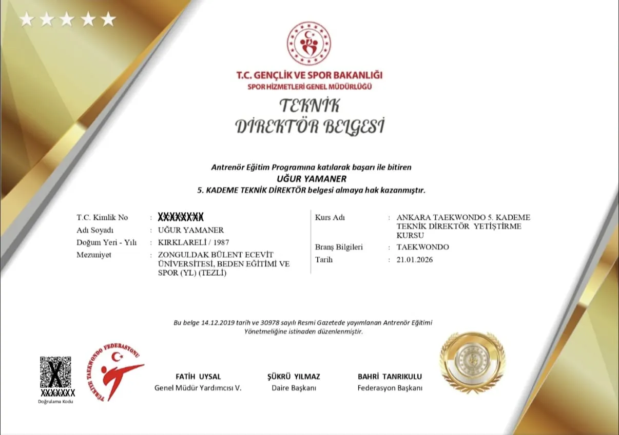 Kırklareli spor camiası, Taekwondo branşında elde edilen önemli bir başarıyla gurur yaşıyor. Sporculuk geçmişi, akademik birikimi ve antrenörlük kariyeriyle adından sıkça söz ettiren Uğur Yamaner, Kırklareli’nin ilk ve tek Taekwondo 5. Kademe Teknik Direktörü olarak ilin spor tarihine adını yazdırdı. Bu unvan, hem bireysel bir kariyer zirvesi hem de kırklareli sporu adına önemli bir ilk olma özelliği taşıyor.