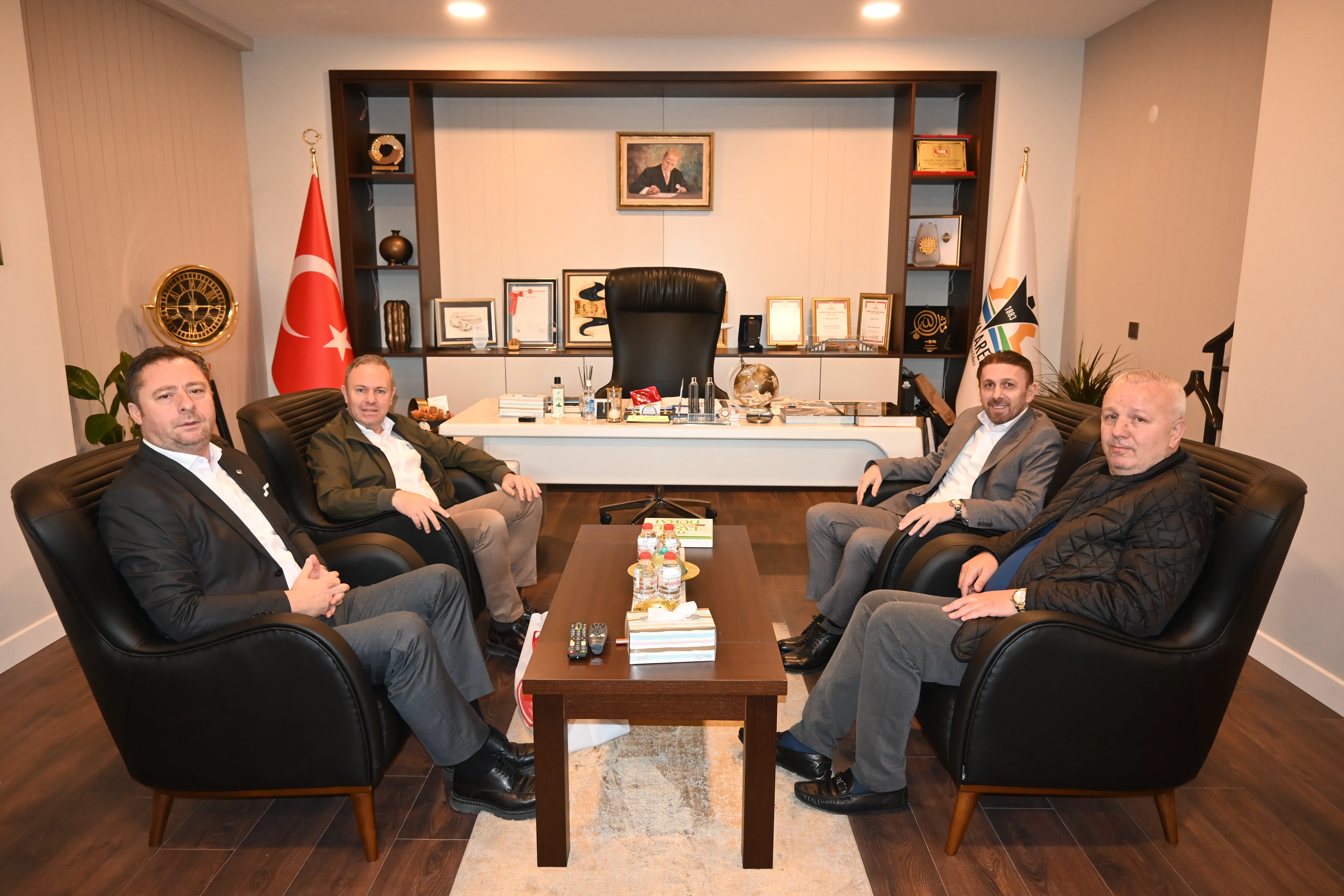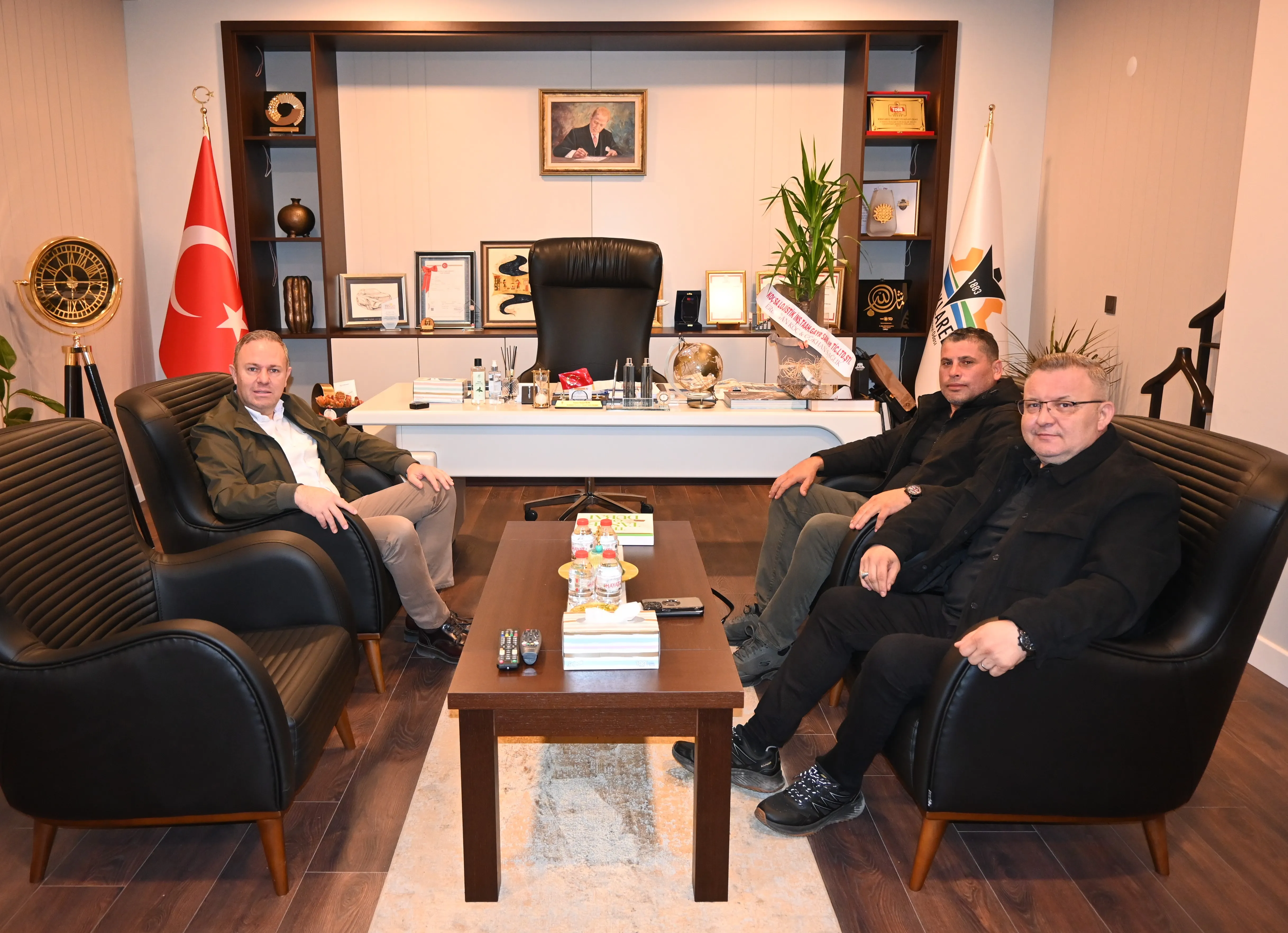 Kırklareli TSO Yönetim Kurulu Başkanı Soner Ilık ve Meclis Başkanı İsmail Hakkı Özsan, yeni hizmet binasında Kapıcıoğlu Taahhüt İnşaat A.Ş. sahibi Nazım Kapıcıoğlu ve Nazar İnşaat Turizm Ticaret Ltd. Şti. sahibi Aziz Kapıcıoğlunu misafir etti. Ilık, Kapıcıoğlu ailesinin ziyaretini de memnuniyetle karşıladıklarını belirterek, bu tür görüşmelerin oda ve üyeler arasındaki bağları güçlendirdiğini kaydetti.