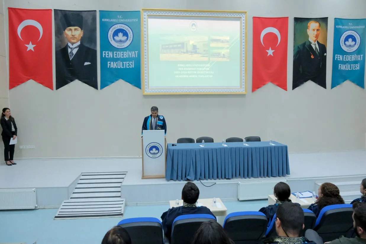 Kırklareli Üniversitesi Fen-Edebiyat Fakültesi 2025–2026 Eğitim-Öğretim Yılı Akademik Kurul Toplantısı, Rektör Yardımcıları Prof. Dr. Meryem Çamur Demir ve Prof. Dr. Eylem Özkaya Lassalle ile Fakülte Dekanı Prof. Dr. Ertuğ Can’ın katılımlarıyla gerçekleştirildi.