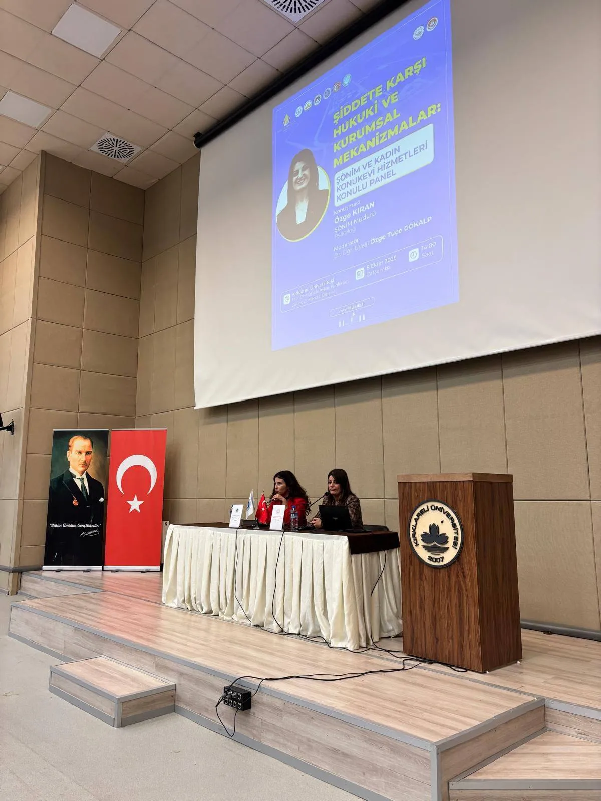 Kırklareli Üniversitesi ev sahipliğinde, Kırklareli Aile ve Sosyal İşler Müdürlüğü ile ŞÖNİM işbirliğiyle “Şiddete Karşı Hukuki ve Kurumsal Mekanizmalar: ŞÖNİM ve Kadın Konukevi Hizmetleri” konulu panel düzenlendi. Etkinlik, 8 Ekim 2025 Çarşamba günü Prof. Dr. Mustafa Aykaç Konferans Salonu’nda gerçekleştirildi.