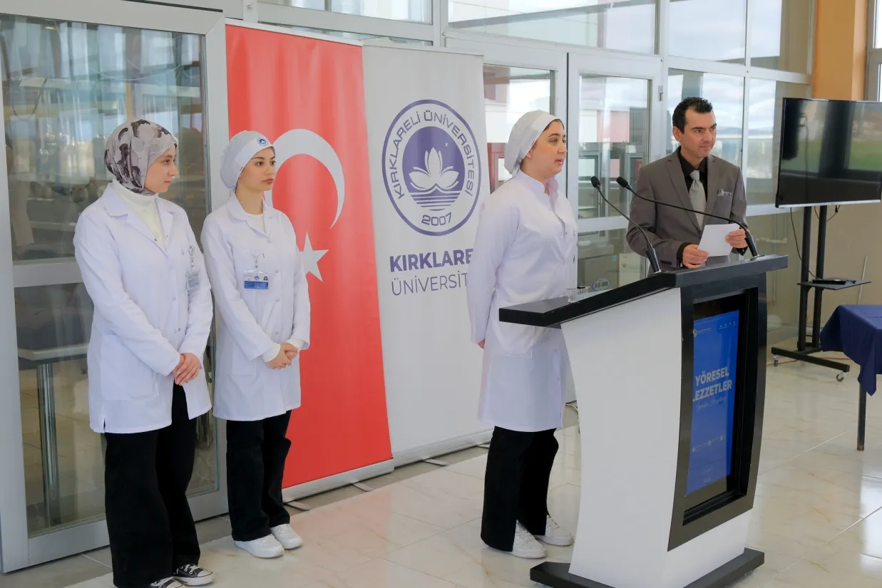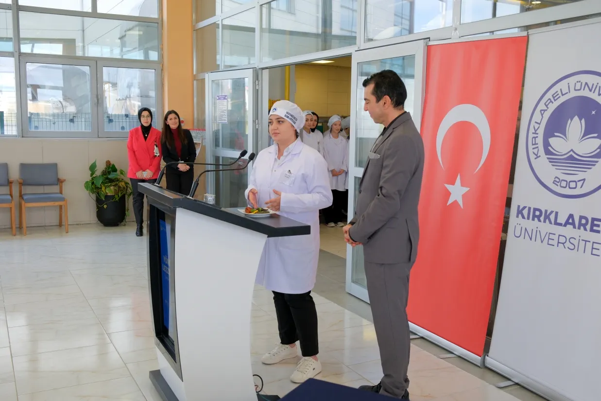 Kırklareli Üniversitesi (KLÜ) Sağlık Bilimleri Fakültesi Beslenme ve Diyetetik Bölümü tarafından düzenlenen “Yöresel Lezzetler Mutfak Sunumu”, geniş bir katılımla gerçekleştirildi. Etkinliğe Kırklareli Valisi Uğur Turan başta olmak üzere Cumhuriyet Başsavcısı Özkan Levent Taşkoparan, İdare Mahkemesi Başkanı İbrahim Doğan, KLÜ Rektörü Prof. Dr. Rengin Ak, Cumhuriyet Başsavcı Vekili İsmet Saçlı, Rektör Yardımcısı Prof. Dr. Meryem Çamur Demir ve il protokolü katıldı.