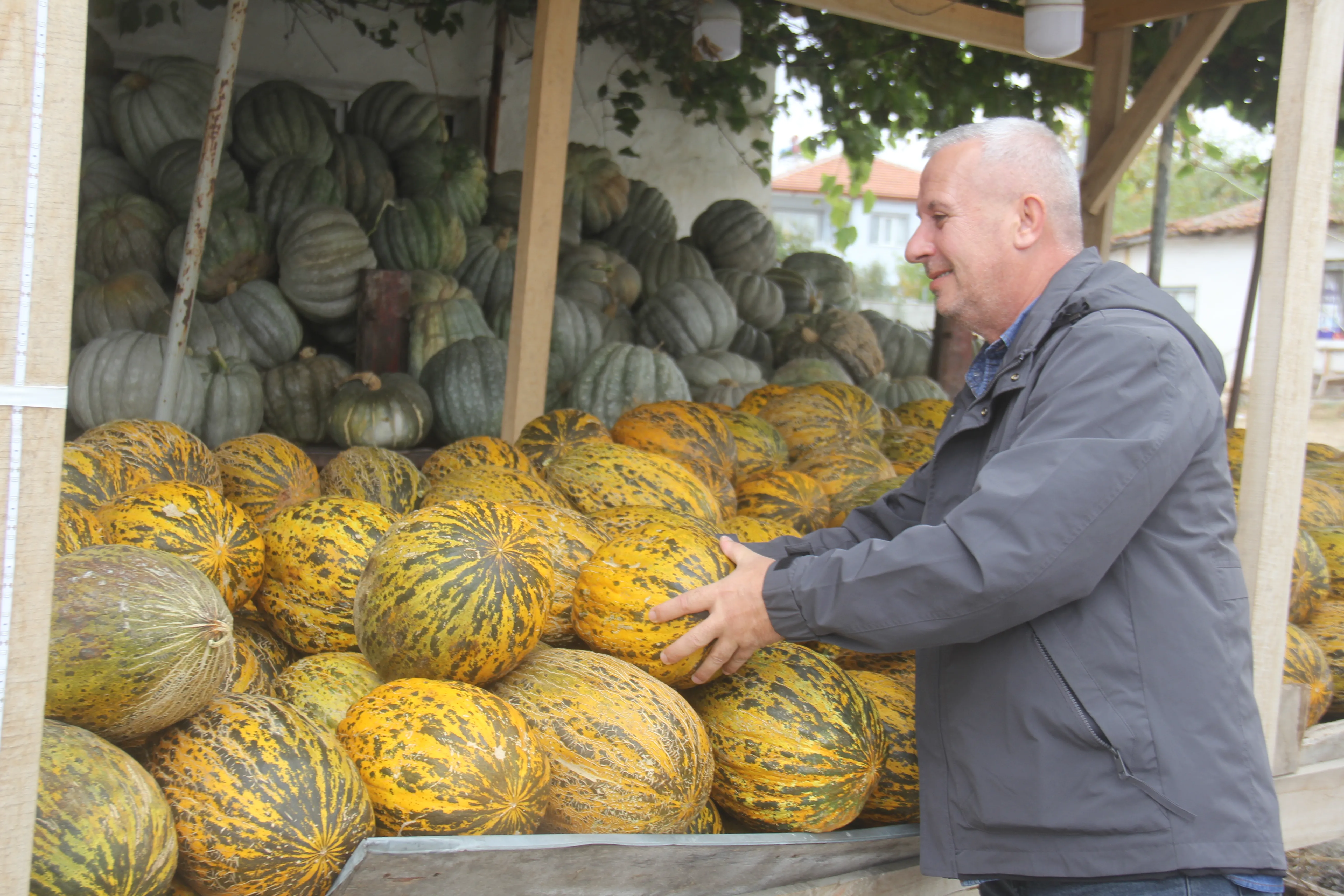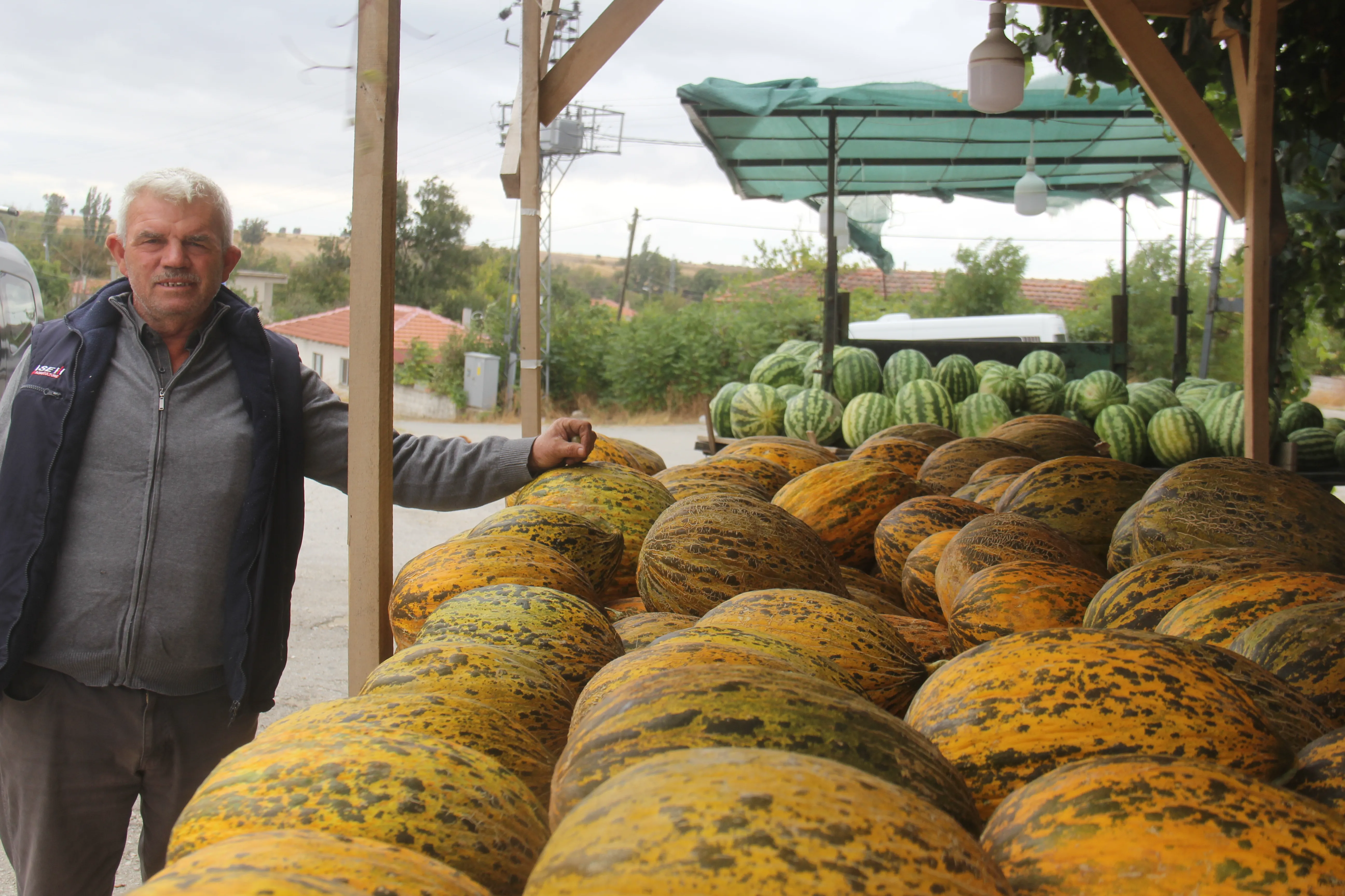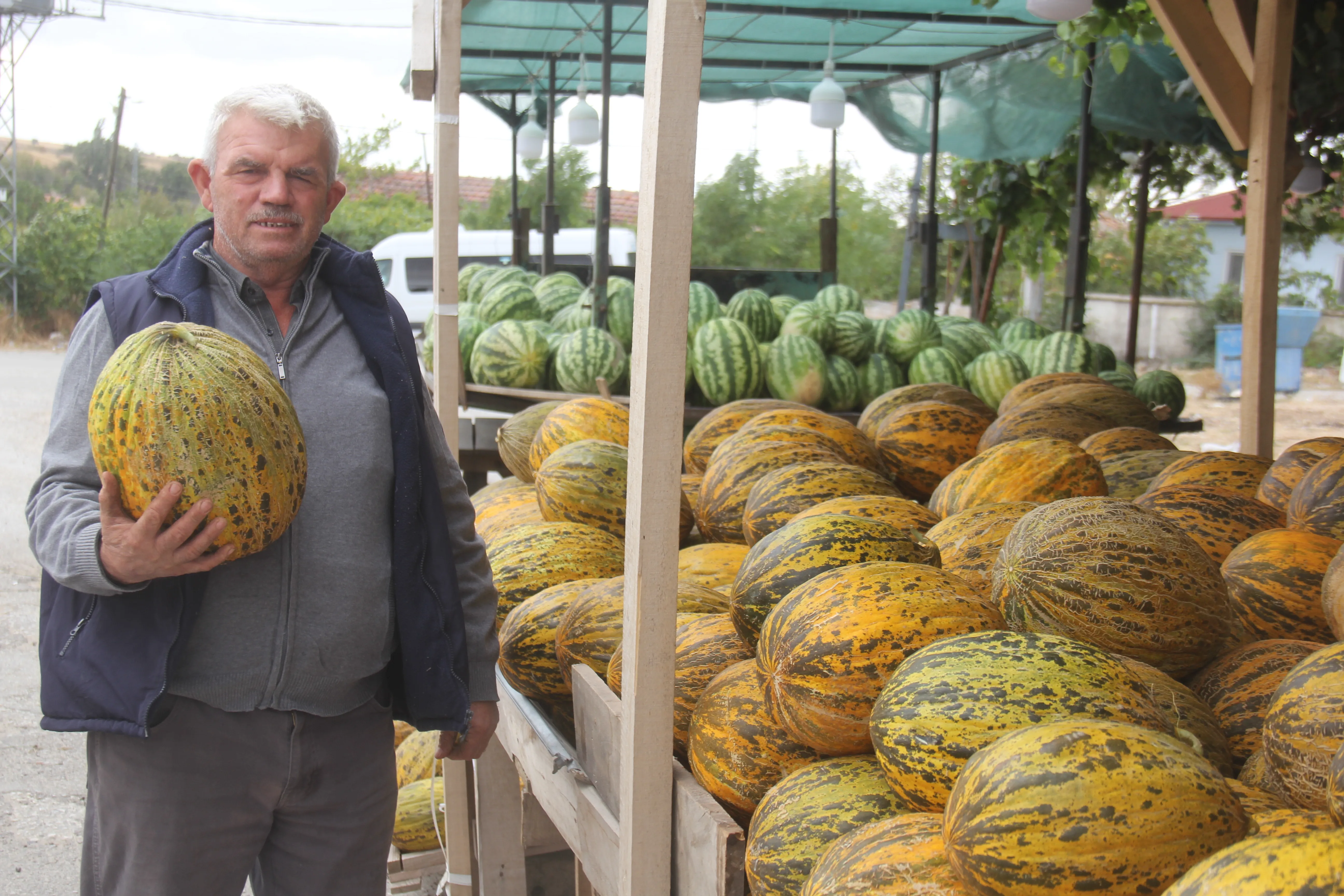 Kırklareli’nin Üsküpdere Köyü’nde yaz aylarının vazgeçilmez lezzetlerinden olan yerli karpuz ve kavun, sezonun son günlerinde vatandaşlarla buluşmaya devam ediyor. Uzun yıllardır üretim yapan köyün emektar çiftçisi Ahmet Gündüz, mahsullerini köy meydanındaki tezgahında satışa sunuyor.