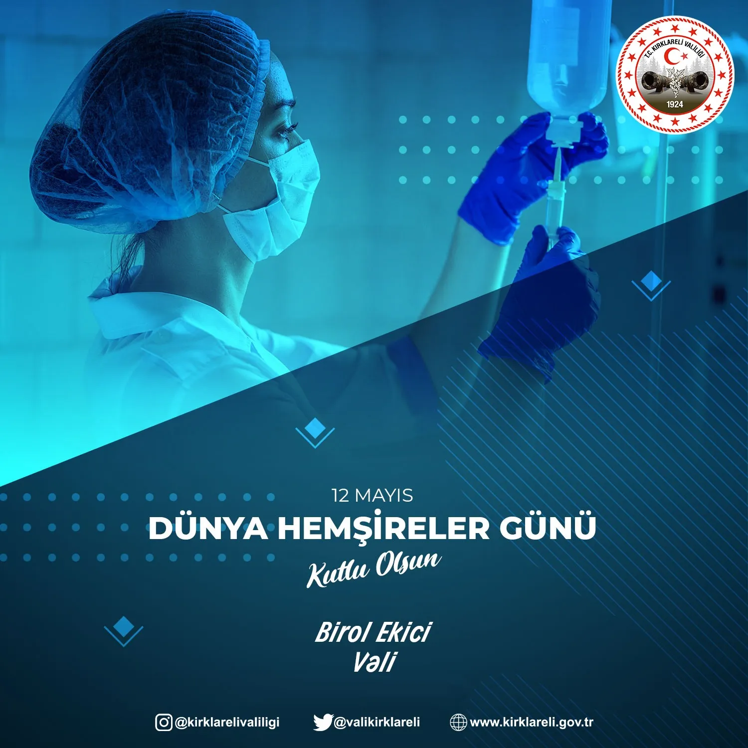 Kırklareli Valisi Birol Ekici, Hemşireler Günü'nü kutlama mesajında sağlık hizmetlerinin temel unsurlarından biri olan hemşirelerin kutsal bir mesleği ifa ettiğine vurgu yaparak başladı. Hemşirelerin, bireyin, ailenin ve toplumun sağlığını koruma, geliştirme ve hastalık halinde iyileştirme gibi önemli roller üstlendiğini belirtti. Bu görevleri büyük bir fedakarlıkla yerine getirdiklerine dikkat çekti.