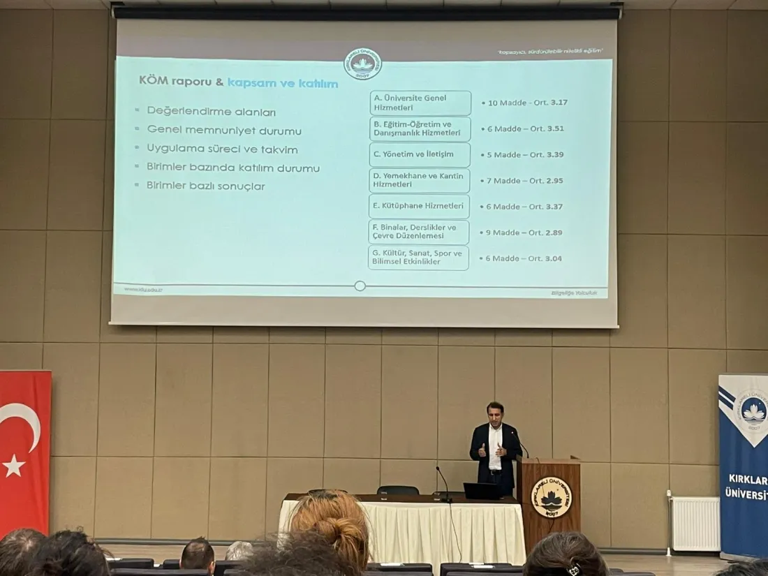 Toplantıda ayrıca üniversitemizin tüm kampüs ve birimlerini kapsayan Kurumsal Eğitim Ortamlarını Yerinde İnceleme-Değerlendirme (KOD) çalışmasının sonuçları da sunuldu. Eğitim ortamlarının fiziksel koşulları, materyal yeterlilikleri ve öğrenme süreçlerine katkıları üzerinde durularak birim bazlı mevcut durum analizleri katılımcılarla paylaşıldı.