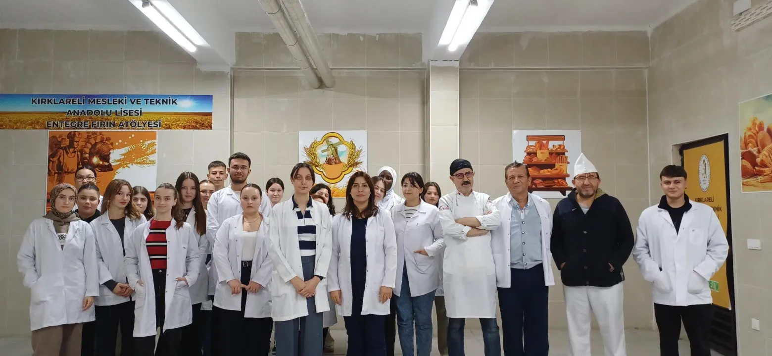 Teknik gezinin ikinci bölümünde öğrenciler, Kırklareli Turizm Mesleki ve Teknik Anadolu Lisesi Entegre Fırın Atölyesini ziyaret etti. Okul Müdürü Ünal Gürsel tarafından karşılanan öğrenciler, unun ekmeğe dönüşme sürecini tüm aşamalarıyla gözlemledi. Kullanılan ekipmanlar, üretim hatları ve paketleme süreçleri detaylı şekilde öğrencilere aktarıldı.
