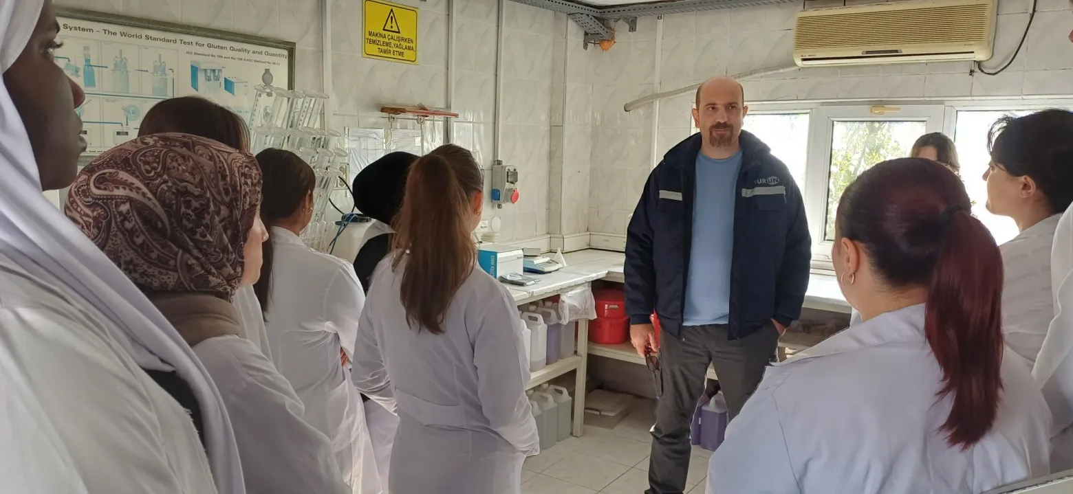 Gezinin en dikkat çekici bölümlerinden biri de firma laboratuvarı ziyaretiydi. Öğrenciler, laboratuvar ortamında gerçekleştirilen reolojik ve fizikokimyasal testler, analiz prensipleri ve sonuç değerlendirmelerini uygulamalı olarak gözlemledi. Ayrıca firmanın yürüttüğü Ar-Ge çalışmaları hakkında bilgiler alarak, üretilen unlarla yapılan geliştirme süreçlerini yerinde inceleme şansı buldular.