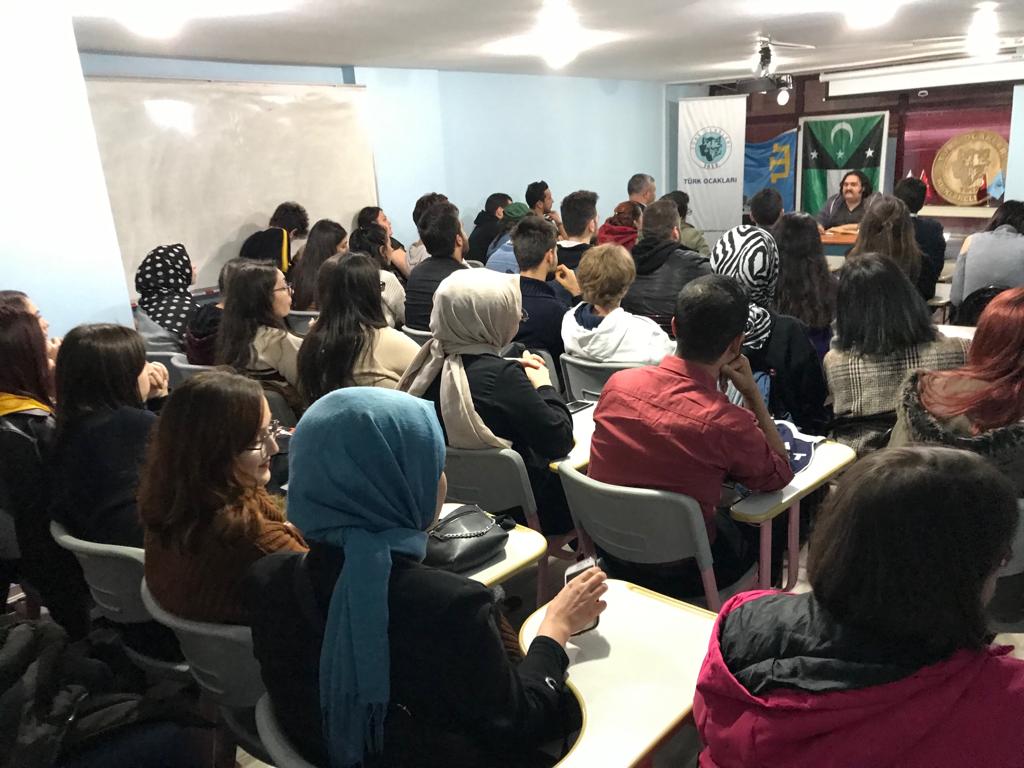 Haber Aylin Ayaz Türk Ocakları Kırklareli Şubesi’nin geleneksel olarak düzenlediği Ocakbaşı Sohbetlerinin bu haftaki konusu,“Korkulu Halk Hikayeleri”idi. Araştırmacı-Yazar Mehmet Berk Yaltırık’ın yaptığı sunuma, Kırklareli Üniversitesi öğretim üyeleri, öğrencileri ve Türk Ocakları üyelerinin yanı sıra yazarın okur kitlesi de katıldı. Konferans Kırklareli Türk Ocağı Başkanı Utku Mehmet Öden’İN konuşmasıyla başladı. İlk olarak sözlü kültürün edebiyata etkisinden bahseden Yaltırık, katılımcılara derlediği halk söyleşilerinden, kaynak kişilerinden, çalıştığı bölgelerden ve korkulu halk hikayelerinin ortaya nasıl çıktığından bahsetti. Kaynak kişilere yaklaşımın önemini vurgulayan Yaltırık,farklı bölgelerde aynı olayların farklı varyantları ile karşılaştığını belirtti. Yaltırık, sunumunun devamında halk söyleşileri motiflerine değindi. Gelin, boğa, minare boyunda adam, kesik başlı gelin, vampir gibi motiflerin Trakya bölgesinde yaygın olduğunu söyledi. Özellikle ‘’Gelin’’ motifinin Kırklareli’nin Lüleburgaz ilçesi ve Edirne’defarklı kişiler tarafından aynı özelliklere sahip olarak görüldüğünü paylaştı. Vampir motifinin ise daha çok Karadeniz bölgesinde görüldüğünü söyleyen Yaltırık, Ayrıca Anadolu sahasında da benzer olayların bazı yansımalarının görüldüğünü ilgililer ile paylaştı ve örnek hikayeleri katılımcılara anlattı. Bu tür halk söyleşilerinin çok az derlendiğini belirten Yaltırık, bunun sebebinin ise kaynak kişilerin anlatırken duyduğu korkudan kaynaklandığını ve aynı şekilde derleyen kişilerin de bu tür halk söyleşilerini derlemekten çekindiklerini söyledi. Son olarak soruları cevaplayan Yaltırık katılımcılara konu içeriği ile ilgili kitaplar önerdi ve akıllara takılan soruları cevapladı.Son olarak katılımcılara teşekkür eden Yaltırık sunumunu sonlandırdı. Sunumun ardından Kırklareli Türk Ocağı Başkanı Utku Mehmet Öden kapanış konuşmasını yaptı ve sunumu için Mehmet Berk yaltırık’a teşekkür plaketini takdim etti. Programın ardından misafirlere Türkistan pilavı ikram edildi, “Korkulu Halk Hikayeleri” sohbeti Kırklareli Türk Ocağı Şubesi giriş katında devam etti.