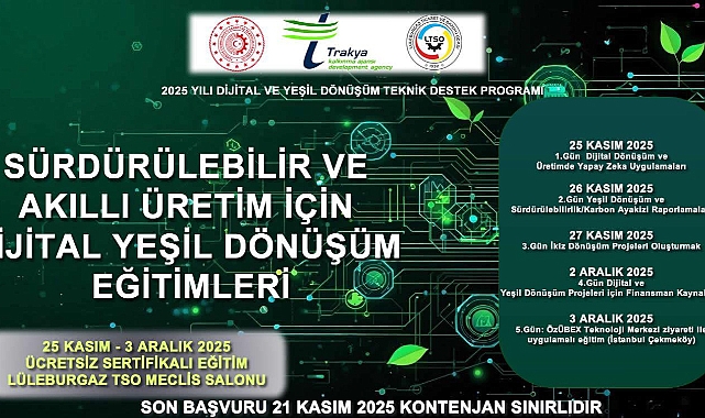 Lüleburgaz Ticaret ve Sanayi Odası, Trakya Kalkınma Ajansı iş birliğiyle yürütülen “Dijital ve Yeşil Dönüşüm Teknik Destek Programı” kapsamında imalat sanayinde faaliyet gösteren işletmelere yönelik yeni bir eğitim programı başlattı.