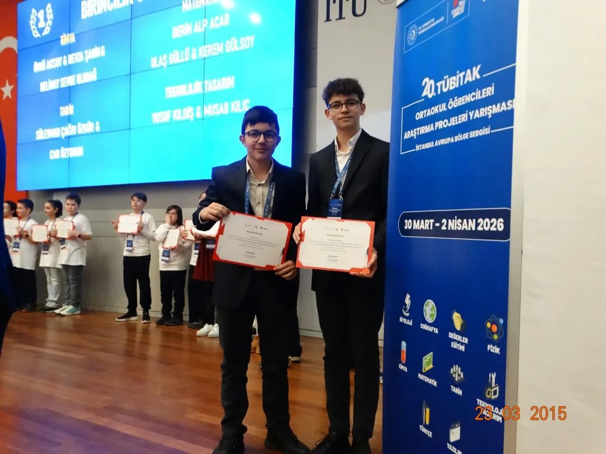 Kırklareli İl Milli Eğitim Müdürlüğü tarafından yapılan açıklamaya göre, 30 Mart – 2 Nisan 2026 tarihleri arasında İstanbul Teknik Üniversitesi ev sahipliğinde düzenlenen 2204-B TÜBİTAK Ortaokul Öğrencileri Araştırma Projeleri Yarışması’nda Lüleburgaz Bilim ve Sanat Merkezi öğrencileri büyük bir başarıya imza attı.
