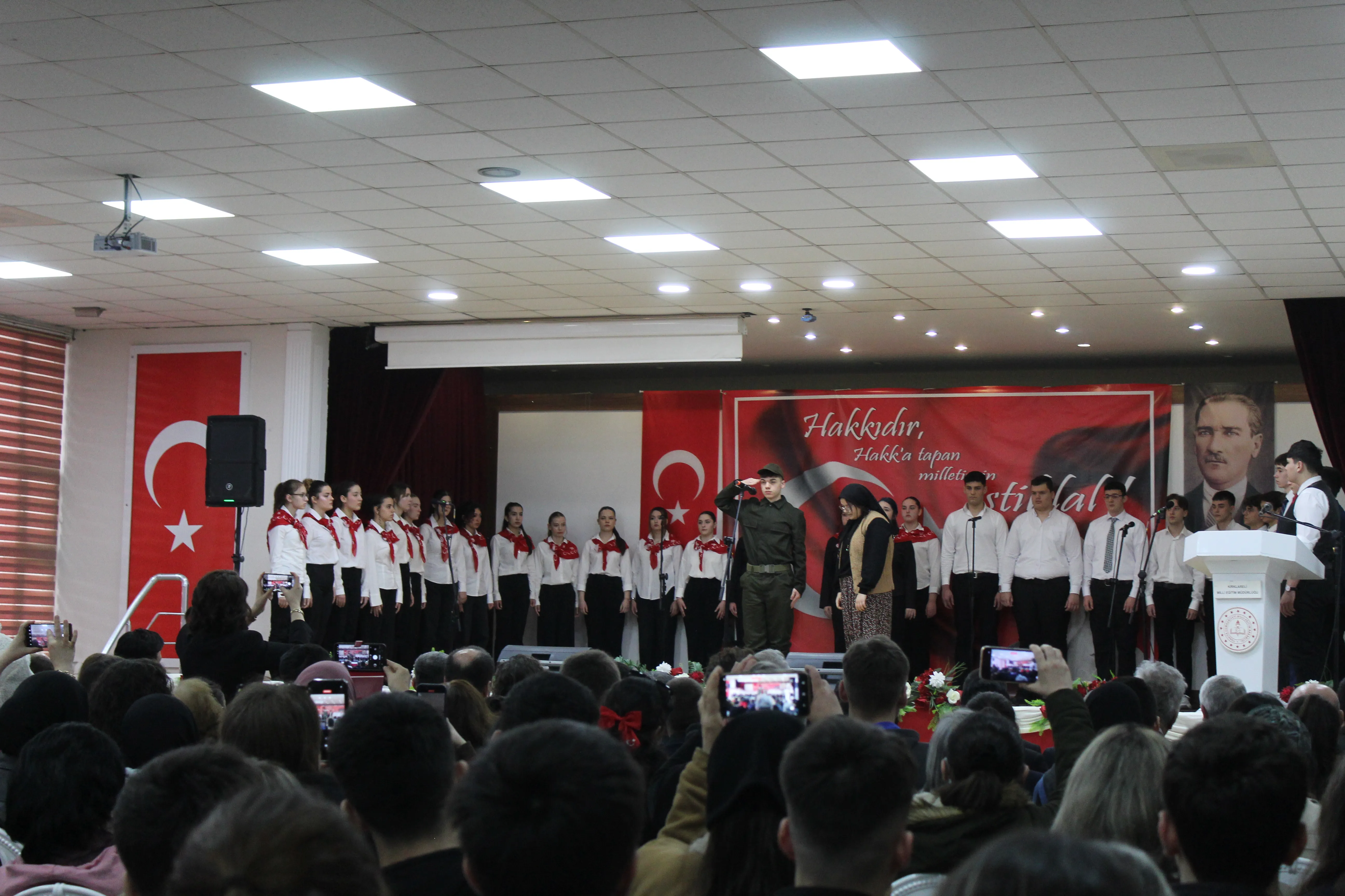 Kırklareli Atatürk Anadolu Lisesi tarafından hazırlanan program, saygı duruşu ve İstiklal Marşı’nın okunması ile başladı. Törene katılan öğrenciler ve davetliler, milli marşın okunması sırasında büyük bir gurur ve duygu yoğunluğu yaşadı.