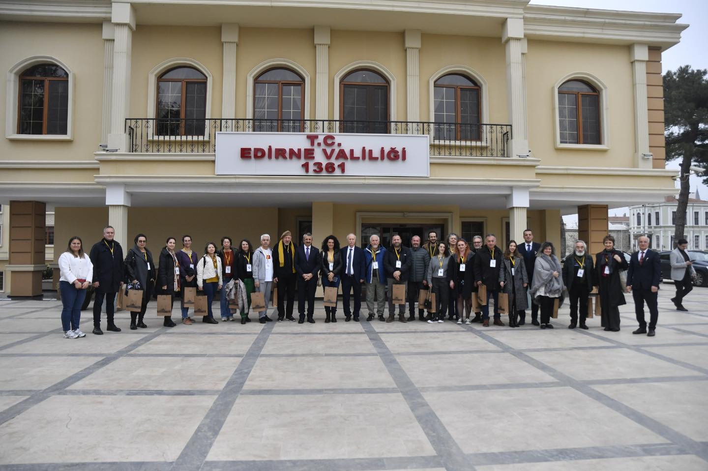 Sempozyumun önemli etkinliklerinden biri olan "Balkan Ressamların Fırçalarından Edirne" çalıştayı, Balkan ülkelerinden şehre gelen 25 ressamın katılımıyla gerçekleşecek. Ressamlar Edirne Valisi Yunus Sezer ile bir araya geldiler ve hatıra fotoğrafı çekildiler.