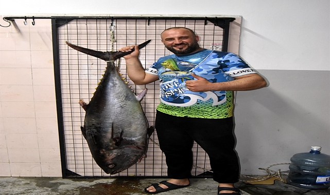 Oltayla 1 metre 74 santimlik orkinos yakaladı, o anları kaydetti