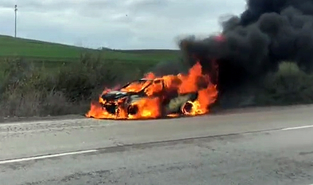 EDİRNE'de seyir sırasında alev alan otomobil, kullanılamaz hale geldi. Sürücü Mehmet Gündoğan, kendisini son anda dışarıya attığını söyledi.