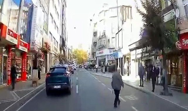 Hükümet Caddesi’nde otomobiliyle seyir halinde olan A.K., aşırı hız yapıp, makas atmaya başladı. Bu sırada yolun karşısına geçmek isteyen kişiyi son anda fark eden A.K. otomobilin direksiyonunu sağa kırdı. Yaya, ezilmekten son anda kurtulurken, o anlar başka bir aracın kamerasına yansıdı.