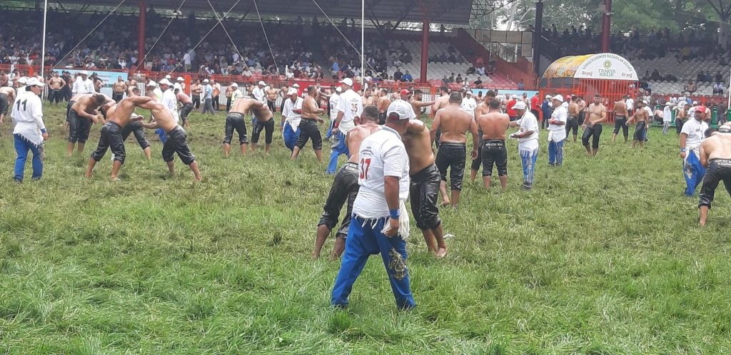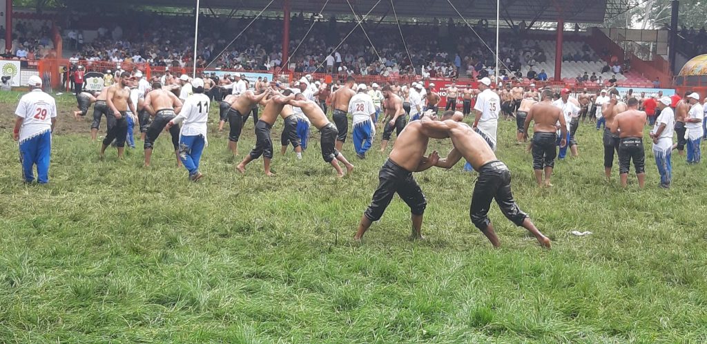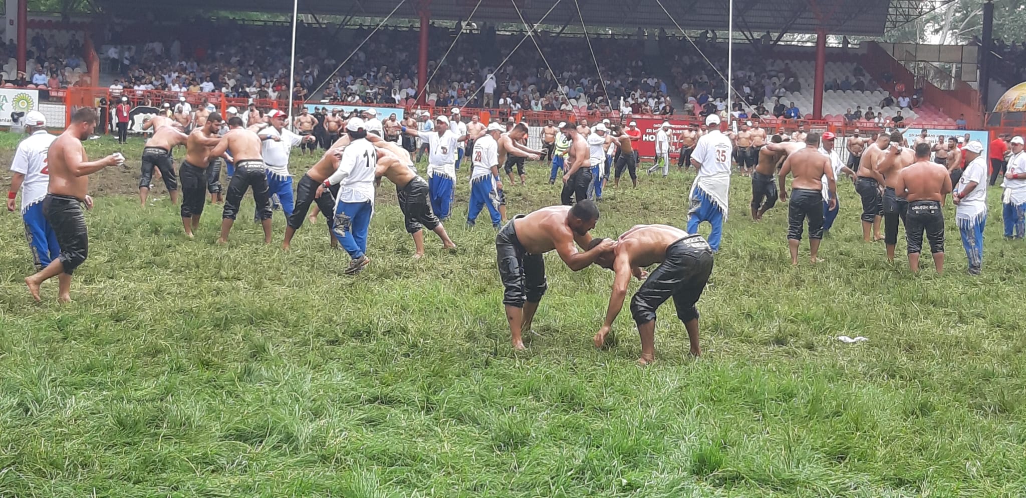 662. Kırkpınar Yağlı Güreşleri’nin ikinci gün müsabakaları Sarayiçi Er Meydanı’nda devam ediyor.Dualı çayırda bu yıl 53’ü başpehlivan 2141 pehlivan mücadele edecek.Cumhuriyetimizin 100. yılında Başpehlivanımızın para ödülü ise 1 Milyon TL olacak!YAĞMUR SERİNLETEREK RAHATLATTI...Diğer yandan öğlen saatlerinde güneşin altında güreşe devam eden Pehlivanlar bir anda sağanak yağışla birlikte serinlediler.662. Tarihi Kırkpınar Yağlı Güreşleri sağanak altında durmadı devam etti. Öğle saatlerinde sıcakla mücadele eden pehlivanlar sağanakla yıkanarak serinlediler. Müsabakası devam eden güreşçiler, mücadelelerini sağanak altında yaparken,Karşılaşmalarını bekleyen bazı pehlivanlar, da sağanak nedeniyle tribünlerin altında yağıştan korunmaya çalıştılar.Hakemler de yağmurluk giyerek müsabakaları yönettiler.Yağış kent merkezinde de etkili oldu, sağanak nedeniyle bazı cadde ve sokaklarda su birikintileri, de oluştu. 662. Tarihi Kırkpınar Yağlı Güreşleri devam ediyor.(Hanife Meriç)
