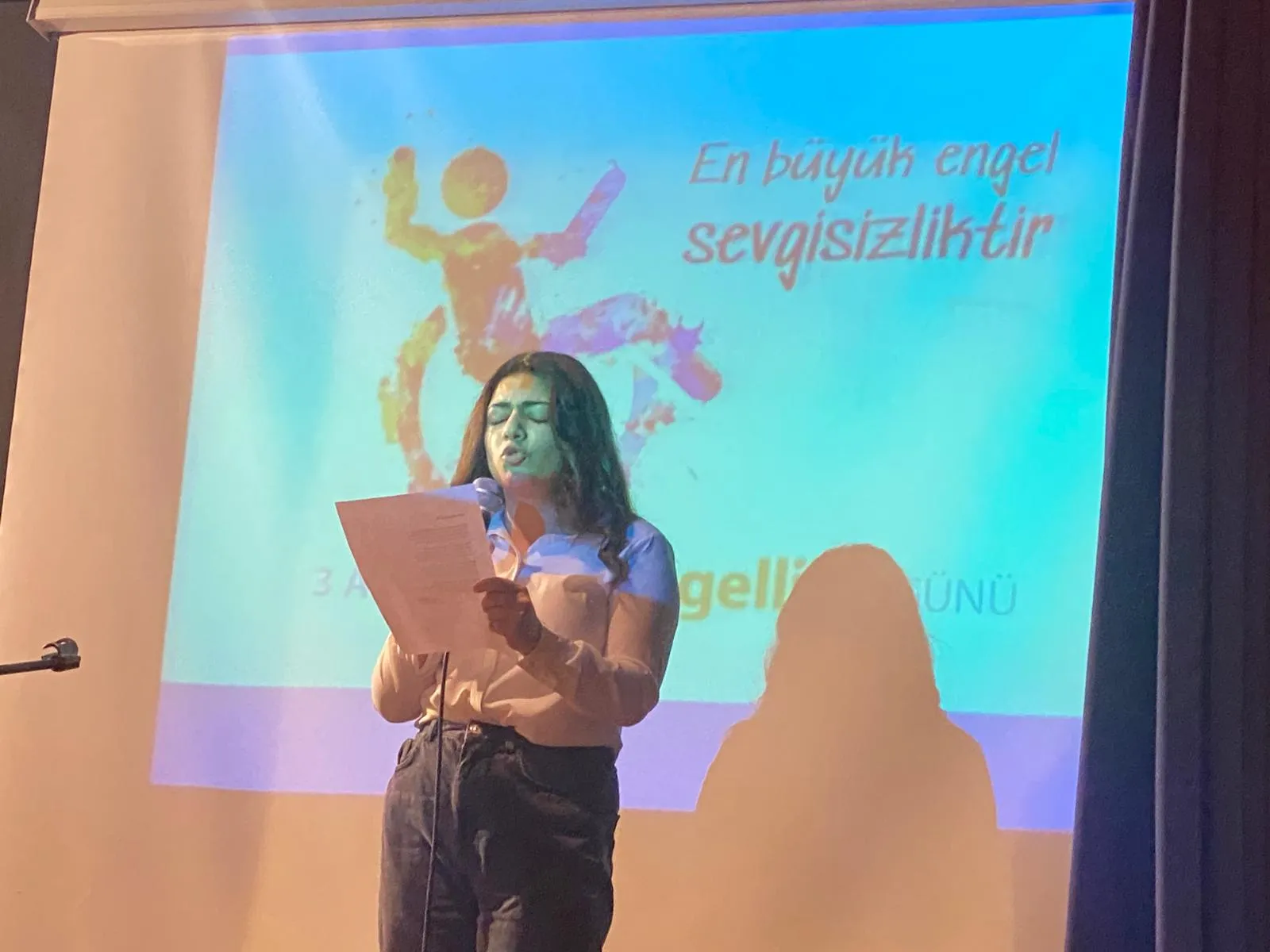 Cengiz Numanoğlu’nun “İçime Hiç Sinmiyor Sana Engelli Demek” adlı eseri Pınarhisar Mesleki ve Teknik Anadolu Lisesi (PMTAL) Müdürü Arif Arıca tarafından seslendirildi. Duygu dolu dizeler, salonda derin bir sessizlik ve büyük bir dikkatle takip edildi. Ardından “Yüreğimle Aşarım” adlı video gösterimi ile engelli bireylerin yaşam mücadelesini anlatan özel görüntüler izleyicilerle buluştu.