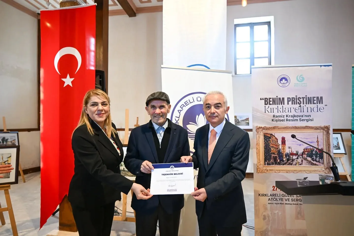Kırklareli Valisi Uğur Turan, Kırklareli Üniversitesi Balkan Araştırmaları Uygulama ve Araştırma Merkezi ile Yunus Emre Enstitüsünün katkılarıyla düzenlenen Priştineli Ressam Ramiz Krajkova’nın “Benim Priştinem Kırklareli’nde” başlıklı yağlı boya sergisi açılışına katıldı. Balkan sanatının güçlü temsilcilerinden Krajkova’nın eserleri, sanatseverlerin yoğun ilgisiyle buluştu.