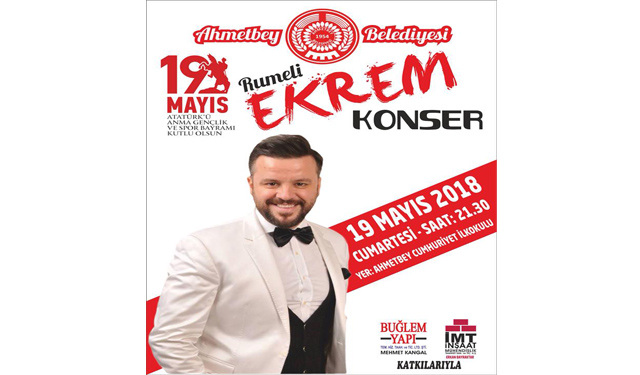 Açıklamada; “19 Mayıs Atatürk'ü Anma, Gençlik ve Spor Bayramı dolayısıyla konser düzenlenecek. Günün anlam ve önemine ilişkin belde halkımıza güzel bir etkinlik yaşatmak adına 19 Mayıs 2018 Cumartesi günü Rumeli Ekrem tarafından Ahmetbey Cumhuriyet İlkokulu’nda konser düzenlenecek. Konseri dinlemek isteyen herkesi bekliyoruz” denildi. (Savaş Eskici)