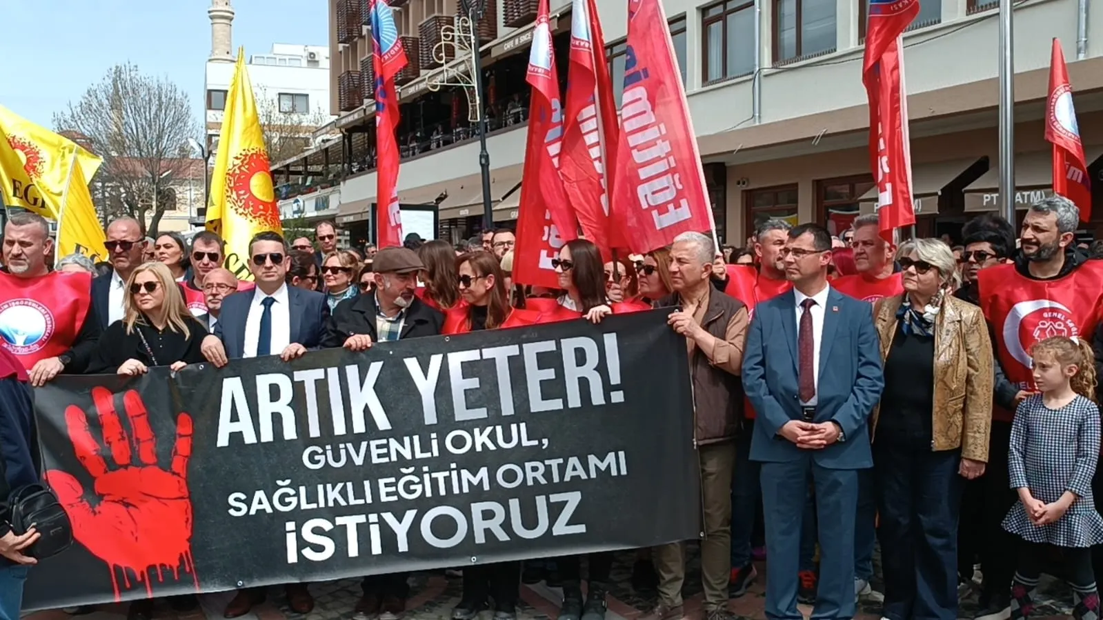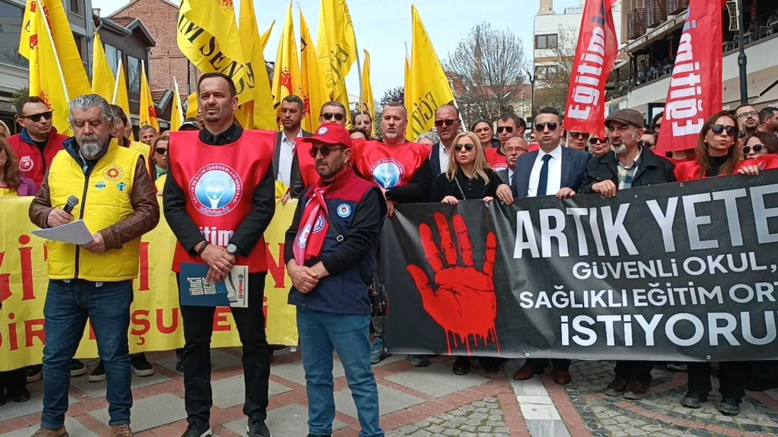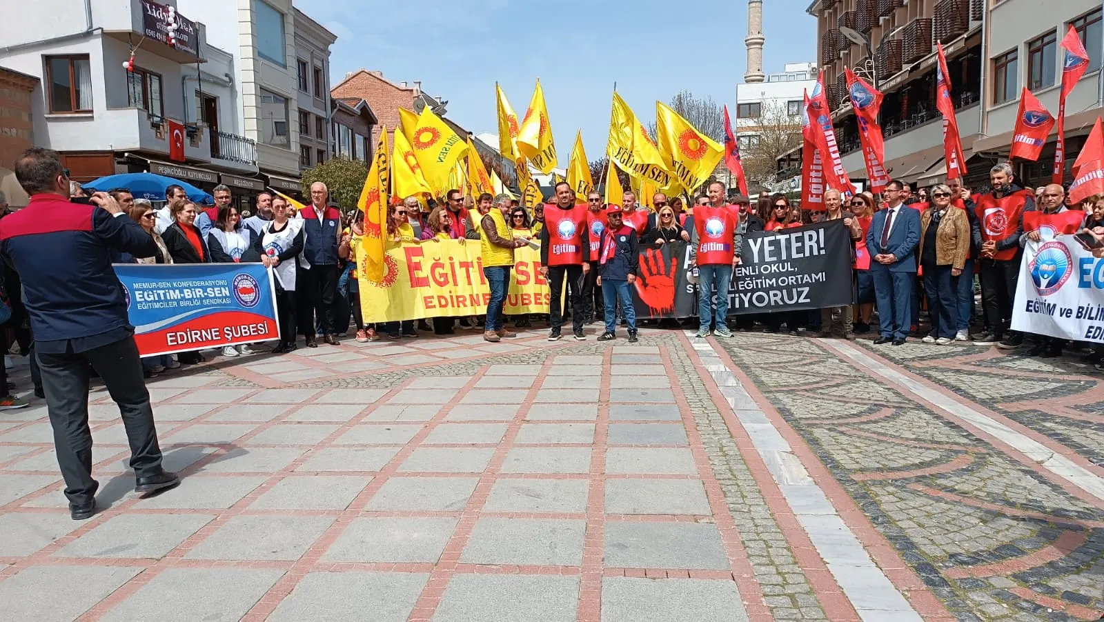 Edirne’de üç eğitim sendikasının çağrısıyla yüzlerce eğitimci iş bırakarak Saraçlar Caddesi’nde bir araya geldi. Eğitim-İş, Eğitim Bir-Sen ve Eğitim Sen üyelerinin katıldığı eylemde, son dönemde okullarda artan şiddet olaylarına dikkat çekildi. Eğitim emekçileri, öğrenciler ve öğretmenler için daha güvenli eğitim ortamları oluşturulması talebinde bulundu.