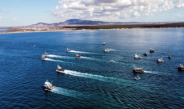 EDİRNE’nin Saros Körfezi'ne kıyısı bulunan Enez ilçesinde, yardım götürmek üzere yola çıktıkları Gazze yolunda İsrail’in saldırısına uğrayan Sumud Filosu’na destek amaçlı 60 tekne ve bot, denize açılarak Filistin bayraklarıyla tur attı.