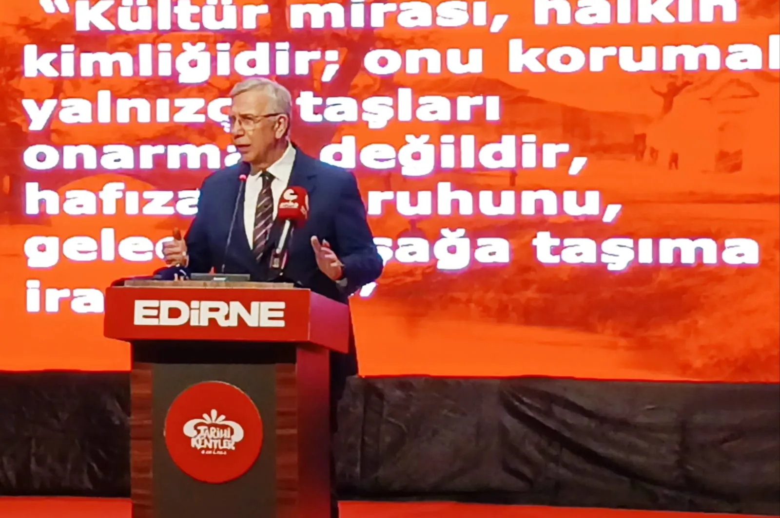 Edirne’nin Osmanlı’ya başkentlik yapmış önemli bir kültür kenti olduğunu vurgulayan Mansur Yavaş, “Bugün Ankara neyse, dün Edirne oydu. Kırkpınar Yağlı Güreşleri, yedi asrı aşan geleneğiyle kültürün yaşayan bir miras olduğunu hatırlatıyor. Edirne’nin tarihi çarşılarından Arnavut kaldırımlı sokaklarına kadar her köşesi kültürel hafızamızın güçlü bir sayfasıdır. Bizim görevimiz geçmişi korumakla kalmayıp bu hikâyeyi geleceğe taşımaktır” ifadelerini kullandı.
