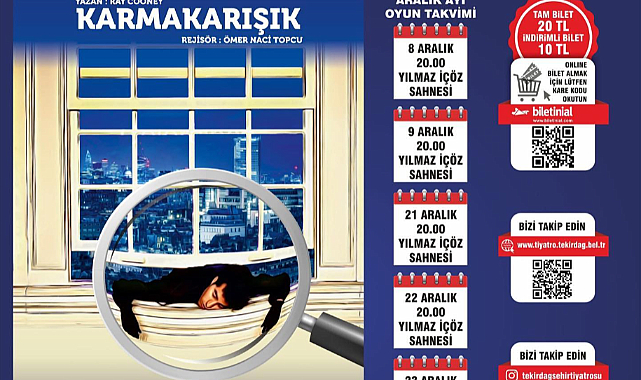 Tekirdağ Büyükşehir Belediyesi Şehir Tiyatrosu, sevilen oyunu "Karmakarışık" ile Aralık ayında sanatseverlerle bir araya gelecek. Yılmaz İçöz Sahnesi'nde daha önce 8 ve 9 Aralık tarihlerinde sahnelenen bu unutulmaz oyun, yılın son günlerinde, 21, 22 ve 23 Aralık'ta izleyicileriyle buluşacak. Bu tarihlerde sahnelenecek olan oyun, yıl sonuna kadar son kez seyircisiyle buluşacak.