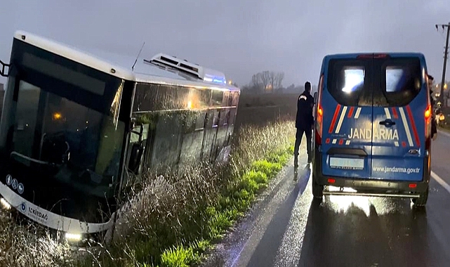 TEKİRDAĞ’ın Çorlu ilçesinde yağmur nedeniyle kayganlaşan yolda, sürücünün direksiyon hakimiyetini kaybettiği Tekirdağ Büyükşehir Belediyesi’ne ait halk otobüsü, yoldan çıkarak tarlaya girdi. Kazada, 2 kişi yaralandı