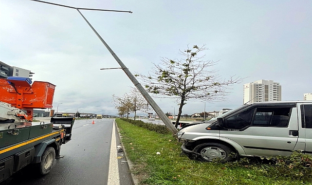 TEKİRDAĞ’ın Çorlu ilçesinde, yağmur nedeniyle kayganlaşan yolda sürücüsünün direksiyon hakimiyetini kaybettiği kapalı kasa minibüs, elektrik direğine çarptı.