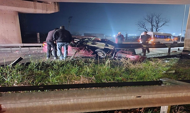 TEKİRDAĞ'da bariyere çarpan otomobildeki Barış Deniz (38) ile Berke Keskin (29) hayatını kaybetti, sürücü Fatih Keser yaralandı.