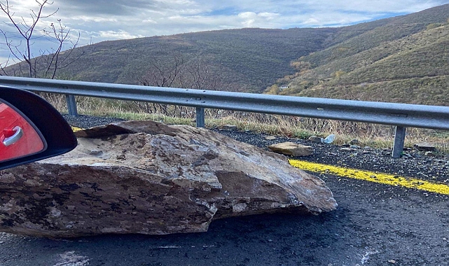 TEKİRDAĞ'da zaman zaman etkili olan yağmur nedeniyle Tekirdağ-Şarköy kara yoluna, dağdan kopan kaya parçaları düştü.