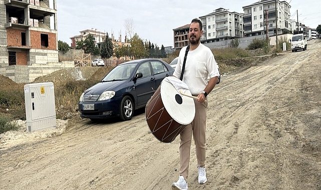 TEKİRDAĞ'da müzisyen Ahmet Merih Çelik, oturduğu bölgede yolların bozuk olmasına bestelediği maniyle tepki gösterdi. Çelik, eline aldığı davulla bestelediği maniyi söyleyerek, sokakta tur attı.