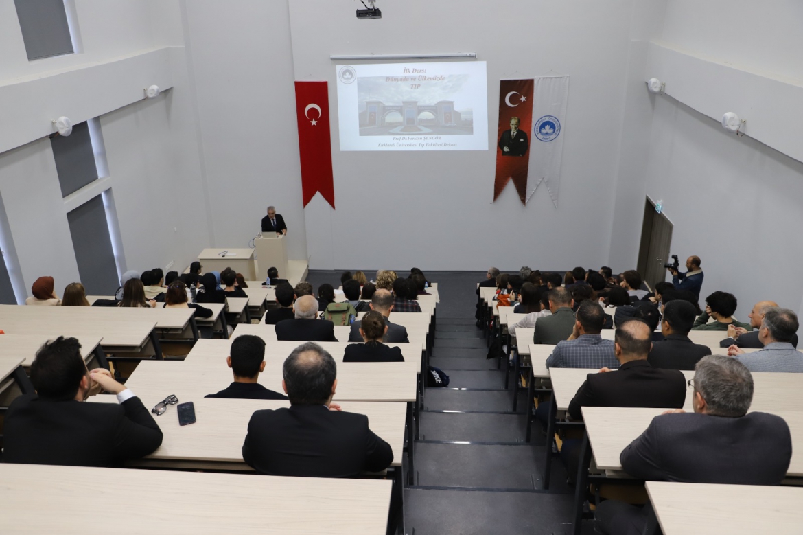 Tıp Fakültesi Dekanı Prof. Dr. Feridun ŞENGÖR, açılış konuşmasının ardından “Tıp Tarihine ve Tıbbın Ülkemizdeki Gelişimine Genel Bir Bakış” başlıklı ilk dersi verdi.