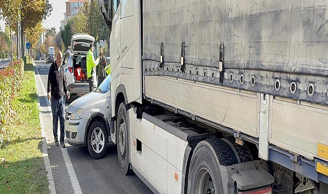 TEKİRDAĞ'ın Çorlu ilçesinde hatalı şerit değiştiren TIR'ın çarptığı otomobil metrelerce sürüklendi. Kazada yaralanan olmadı.