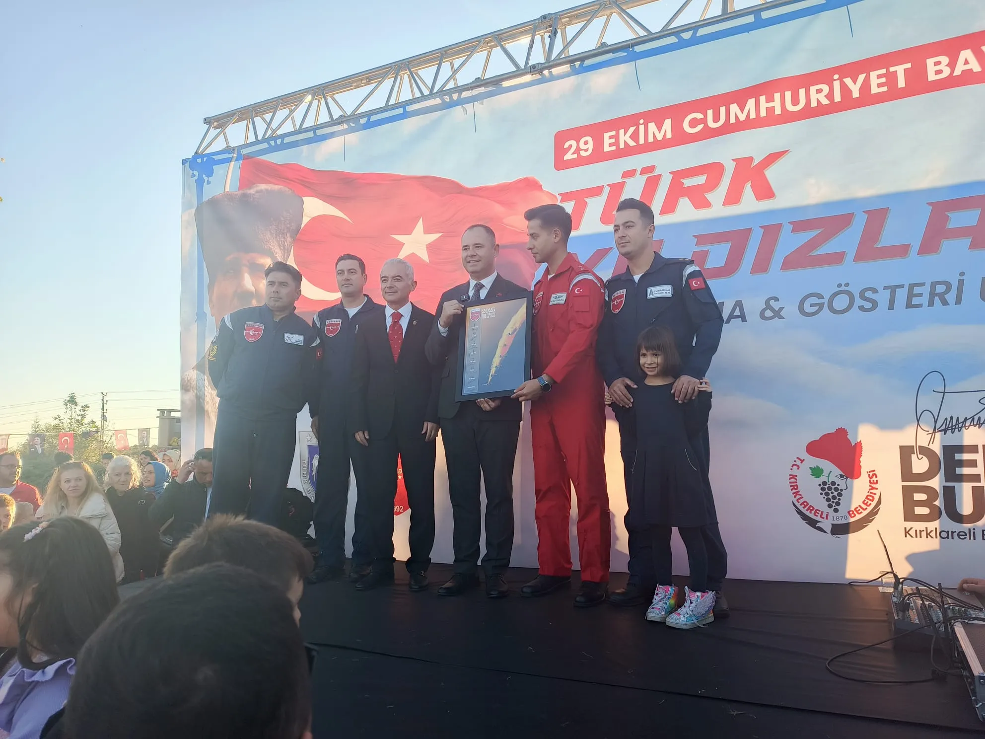 Kırklareli Valisi Uğur Turan da Cumhuriyet’in 102. yılında Türk Yıldızları’nın gösterisinin tarihi bir anlam taşıdığını belirtti. Turan, “Türk Yıldızları’nın gökyüzündeki bu muhteşem performansı, milletimizin bağımsızlık tutkusunun bir yansımasıdır. Cumhuriyet’in ışığı, Kırklareli semalarında bir kez daha parladı” ifadelerini kullandı.
