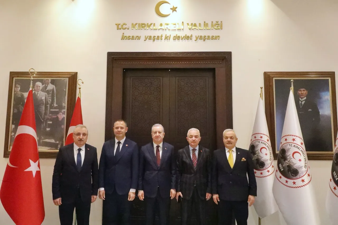 Kırklareli Valisi Uğur Turan, Milliyetçi Hareket Partisi (MHP) Genel Başkan Yardımcısı Sadir Durmaz, Kırklareli Belediye Başkanı Derya Bulut, MHP İl Başkanı Şaban Savaşan ile İl, İlçe ve Belediye Başkanlarını Valilik Makamı'nda kabul etti. Görüşmede yerel yönetimler ve Kırklareli’ndeki projeler üzerine fikir alışverişinde bulunuldu. Ziyaretten duyduğu memnuniyeti dile getiren Vali Turan, konuklarına nazik ziyaretleri için teşekkür etti.