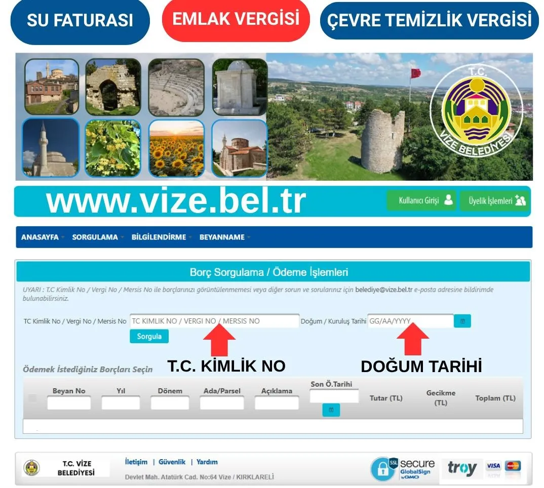 Vize Belediyesi’nin web sitesinde yer alan şifresiz borç ödeme sayfasına giriş yapan vatandaşlar, belediyeye ait su, emlak, çevre temizlik ve diğer borçlarını kolayca sorgulayabilir ve ödemelerini anında gerçekleştirebilir. Belediye yetkilileri, bu sistemin zamandan tasarruf sağladığını ve işlemleri pratik hale getirdiğini vurguladı.