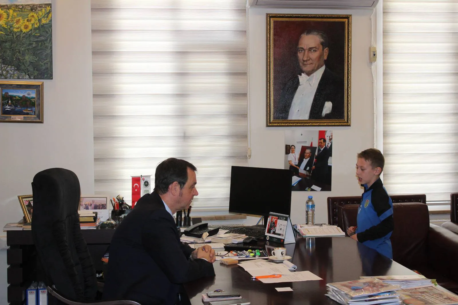 Vize İlçesinde eğitim ve öğretim veren Arife Bekir Uğurlu İlkokulu 3-A sınıfı öğrencileri, Hayat Bilgisi dersleri kapsamında Vize Belediye Başkanı Ercan Özalp’ı makamında Ziyaret etti. Öğrenciler, belediye başkanının görevlerini yakından tanımak ve merak ettikleri soruları sormak amacıyla gerçekleşen ziyarette heyecanlı anlar yaşadı.