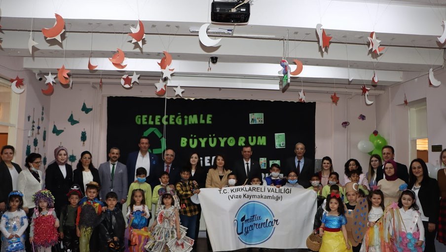 Vize ilçesinde "Umutlu Yarınlar Projesi, Geri Dönüştürüyorum, Geleceğimle Büyüyorum etkinliği" yapıldı.Adalet Erez İlkokulunda güzel bir programla gerçekleştirilen etkinliğe, Kaymakam Elif Canan Tuncer, kurum amirleri ve vatandaşlar katıldı.Programda öğrenci-veli-öğretmenlerin geri dönüşüm malzemelerinden yaptıkları çalışmalar sergilenirken, öğrencilerden oluşan ritim grubunda darbuka, tef, zil ve davullarla eğlenceli bir gösteri gerçekleştirildi.Ana sınıfı öğrencilerinin geri dönüşüm malzemelerinden hazırladıkları kostüm defilesi vatandaşlar tarafından beğenilirken, çocukların gelişimlerinin sağlanması, sanatsal faaliyetlere ilginin arttırılması ve bu faaliyetlere olan yeteneğin ortaya çıkarılması ,çocukların akademik acıdan desteklenmeleri, çocukların zaman ve enerjilerinin kültürel etkinlikler üzerinde yoğunlaşması ile olumsuz alışkanlık edinme riskinin önüne geçilmesi amaçlandı.