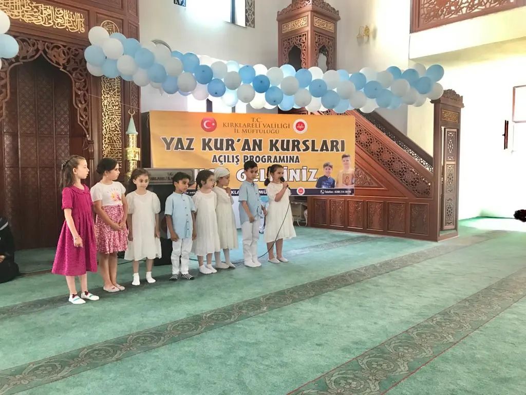 Kırklareli Müftülüğü tarafından 2023 yaz Kur'an Kursu açılış programı Kırklareli Ulu Camii'nde düzenlendi. Öğrencilerin, ailelerin de katılım gösterdiği programda yaz Kuran Kurslarına şenlik havasında başlandı.Kırklareli müftülüğü 2023 yaz Kur'an Kursu açılış programı Kırklareli Ulu Camii'nde gerçekleştirildi. Programa Kırklareli Vali Yardımcısı Onur Bektaş, Kırklareli İl Milli Eğitim Müdürü V. Ali Ergin, Gençlik ve Spor İl Müdürü Emrah Yüksel Babuşçu, Aile ve Sosyal Hizmetler İl Müdürü Faruk Uysal, İl Müftü Yardımcıları Ramazan Özdemir, Hatun Özmen, Turgut Çavdar, Şube Müdürleri Abdullah Mangır, Bayramali Yaşar, Abdullah Bayraktar, Murakıp Atakan Tahtaci ve müftülük personeli katıldı.Açılış konuşması yapan İl Müftü Yardımcısı Hatun Özmen; erken yaşta dini eğitim almanın önemi ve Diyanet İşleri Başkanlığının din eğitimi çalışmaları hakkında bilgi verdi.Program Kırklareli Vali Yardımcısı Onur Bektaş'ın Yaz Kur'an Kursuna katılan öğrencileri tebrik konuşması ile tamamlandı.Yaz kuran kursları öğrenci ve velilerin katılımı ile gerçekleşen program şenlik havası içinde gerçekleşti. (Birol Çakan)