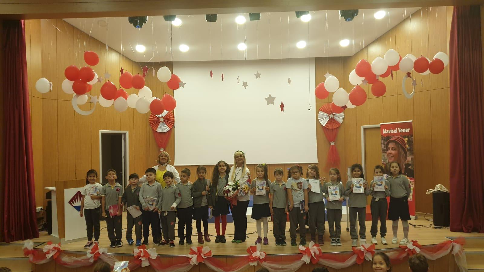 Bahçeşehir Koleji Lüleburgaz Kampüsü konferans salonunda İlkokul 2. Sınıf öğrenci ve öğretmenlerinin de katılımı ile gerçekleşen keyifli söyleşinin ardından öğrenciler kitabın yazarı Mavisel Yener’e kitaplarını imzalatıp karakterleri canlandırdılar.