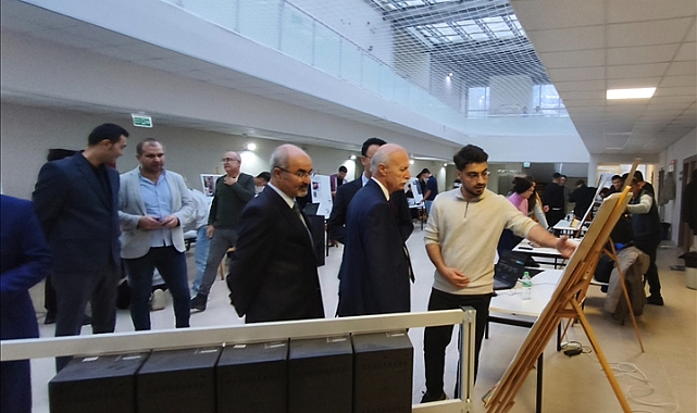 Rektör Prof. Dr. Mustafa Hatipler, öğrencilerin yenilikçi projelerini inceleyerek bilgi aldı ve projelerin toplumsal faydaları üzerine değerlendirmelerde bulundu.