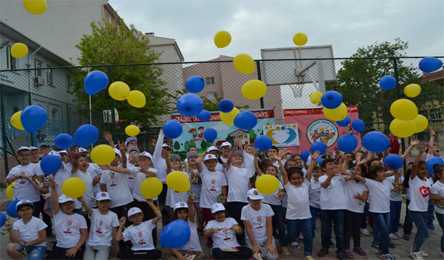 Okul bahçesinde düzenlenen etkinlikte öğrenciler ellerindeki balonları gökyüzüne bıraktı. eTwinning, Avrupa’daki okullar arasında teknolojiyi kullanarak iletişim kurmak, işbirliği yapmak, projeler geliştirmek, paylaşmak amaçlı kurulmuş bir topluluk. Ziya Gökalp İlkokulu 2/A ve 2/B Sınıfı öğrencileri öğretmenleri Buket Gövce ve Sevdağ Çekiç önderliğinde “Öğretmenim Kapımı Çalınca” isimli projeyi yürütüyor. Proje Türkiye’de 81 İl’de ve yurt dışı ortaklarıyla yürütülüyor. Projede çat kapı öğrenci evde ziyaret ediliyor. Evde olan velilerle, öğretmen ve öğrenciler, el becerileri beş taş, körebe gibi çeşitli etkinlikler gerçekleştiriyor.